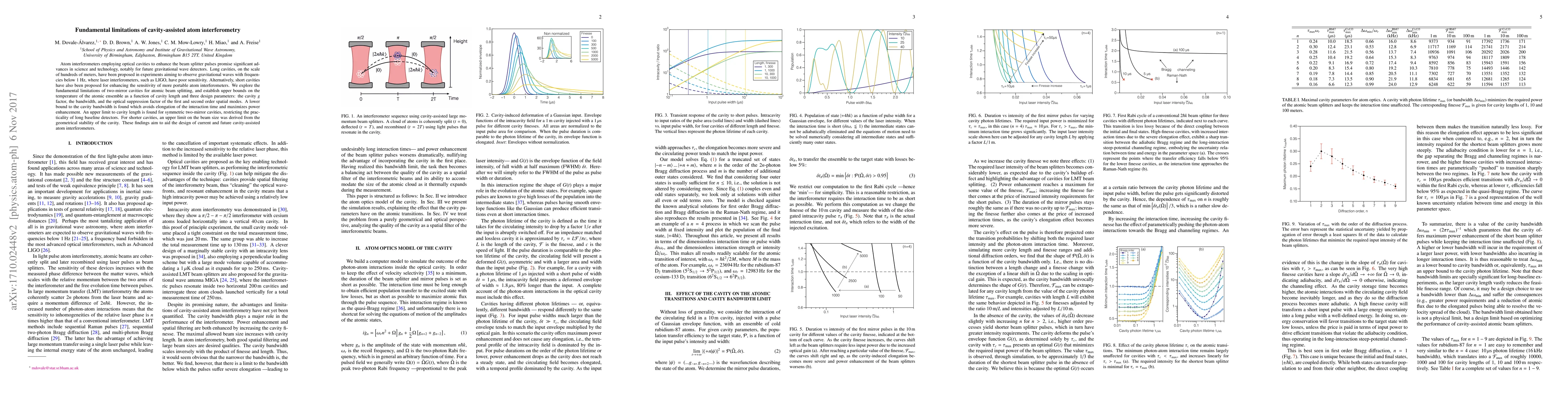 This paper investigates the fundamental limitations of cavity-assisted atom interferometry, establishing upper bounds on atomic ensemble temperature and deriving limits on cavity length and bandwidth to optimize design for future gravitational wave detectors. The study also finds a lower bound for cavity bandwidth and an upper limit for cavity length for practical long-baseline detectors.