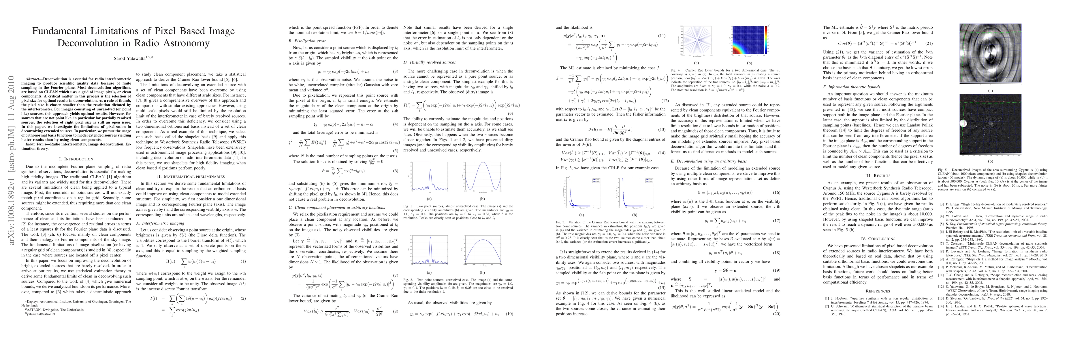 This paper examines the limitations of pixel-based deconvolution in radio astronomy, particularly focusing on the selection of pixel size for optimal results. It finds that while pixelization works well for point sources, it struggles with extended sources, advocating for orthonormal basis functions to model these sources more accurately.
