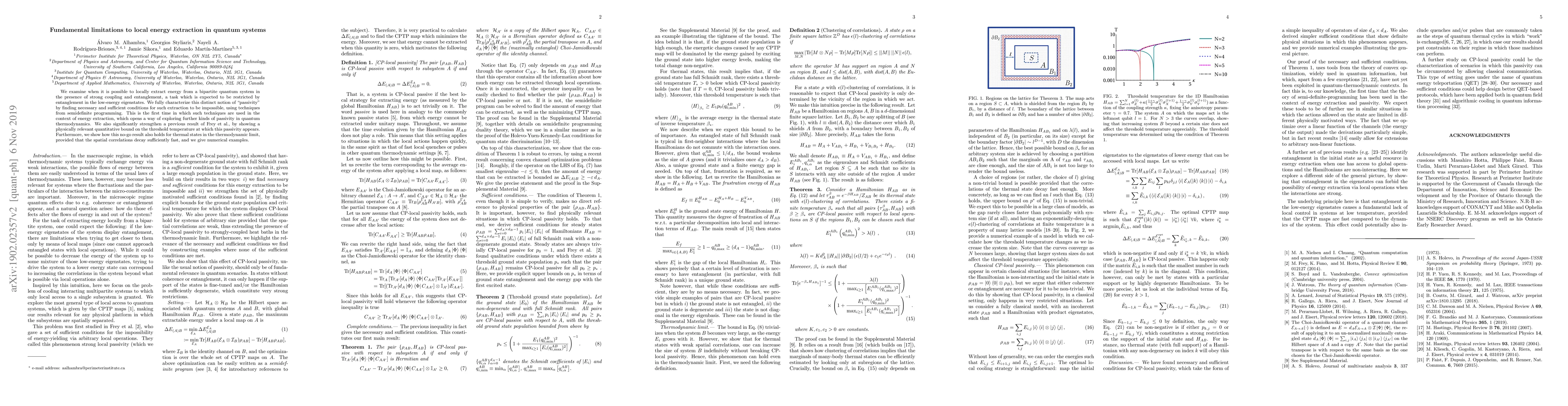 This paper characterizes the fundamental limits on local energy extraction from entangled bipartite quantum systems, establishing necessary and sufficient conditions for passivity using semidefinite programming. It strengthens previous results and provides a quantitative bound on the threshold temperature for passivity, demonstrating its applicability to thermal states in the thermodynamic limit.