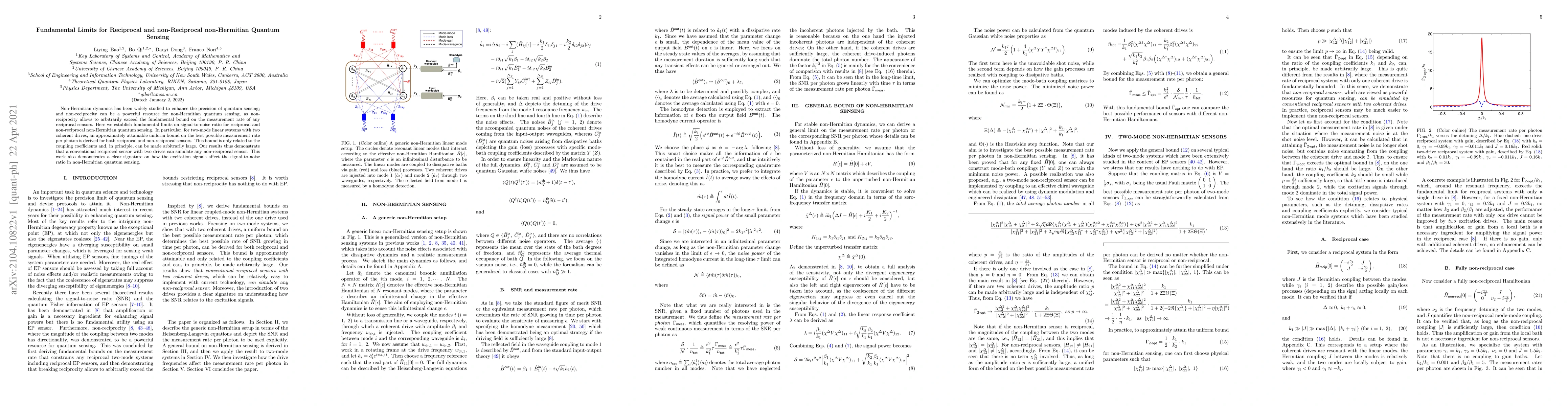 This paper establishes fundamental limits on the signal-to-noise ratio for both reciprocal and non-reciprocal non-Hermitian quantum sensing, showing that a conventional reciprocal sensor can simulate non-reciprocal sensors by adjusting its coupling coefficients. The study highlights how excitation signals impact the sensing precision in non-Hermitian systems.
