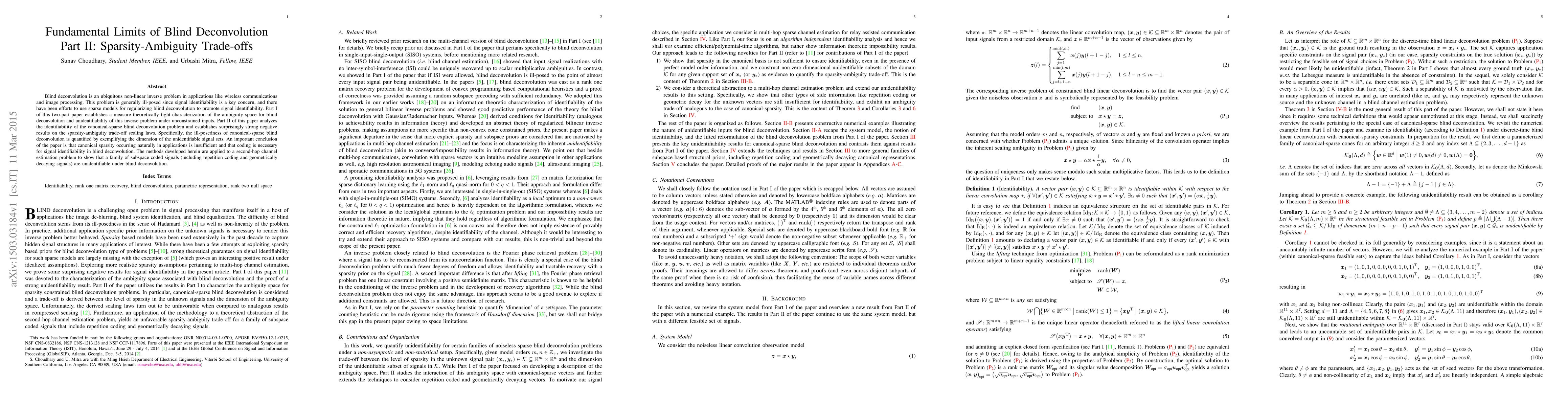 This paper investigates the fundamental limits of blind deconvolution, focusing on the sparsity-ambiguity trade-off. It reveals that canonical sparsity alone is insufficient for signal identifiability, necessitating coding techniques to overcome the inherent ill-posedness of the problem.