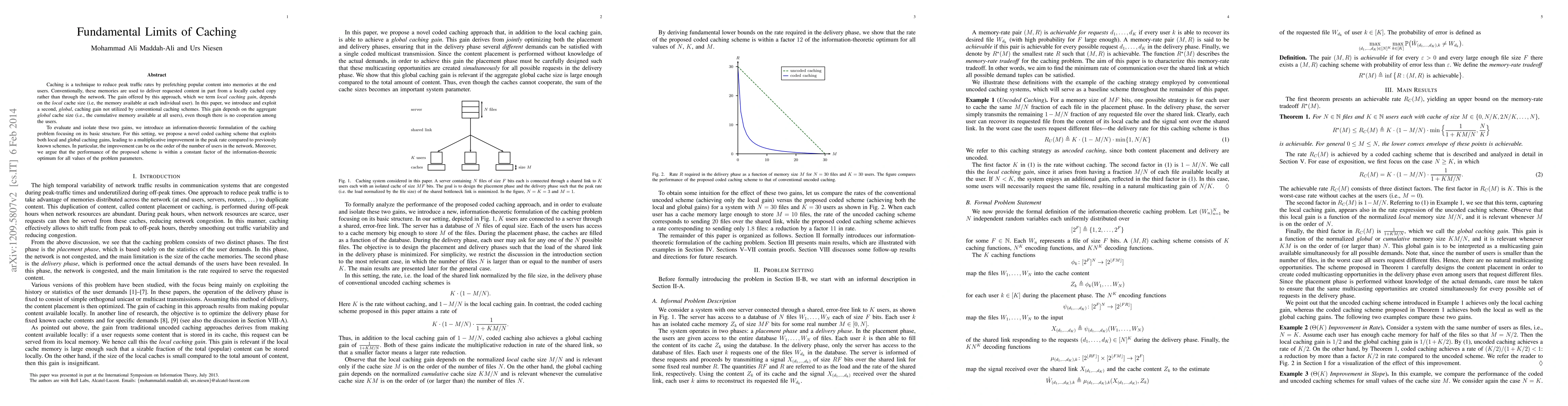 This paper explores the fundamental limits of caching by introducing a novel scheme that leverages both local and global caching gains, leading to significant improvements in peak traffic rates compared to traditional methods. The proposed coded caching scheme achieves a multiplicative enhancement in peak rate, approaching the information-theoretic optimum.