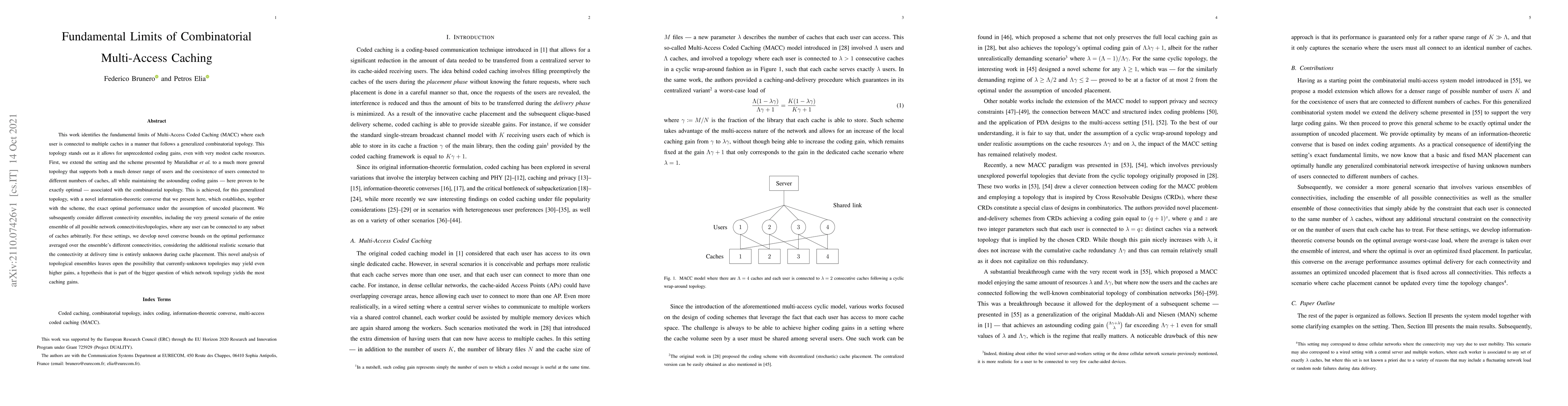 This paper explores the fundamental limits of Multi-Access Coded Caching (MACC) under generalized combinatorial topologies, demonstrating optimal coding gains with modest cache resources. It extends previous schemes to more complex topologies, proving optimal performance through a novel converse bound.