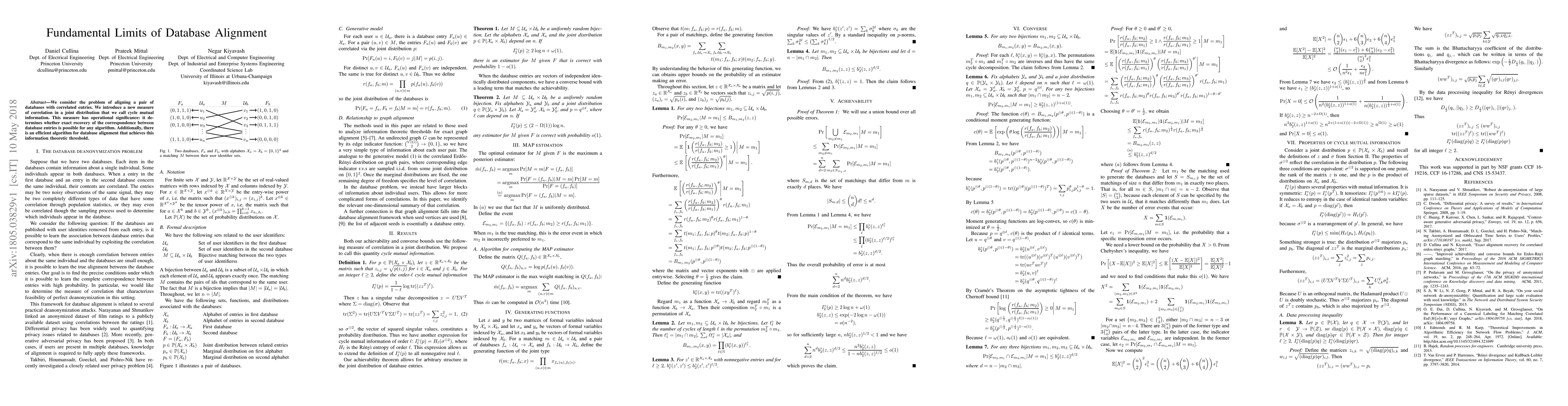 We consider the problem of aligning a pair of databases with correlated entries. We introduce a new measure of correlation in a joint distribution that we call cycle mutual information. This measure has operational significance: it determines whether exact recovery of the correspondence between database entries is possible for any algorithm. Additionally, there is an efficient algorithm for database alignment that achieves this information theoretic threshold.