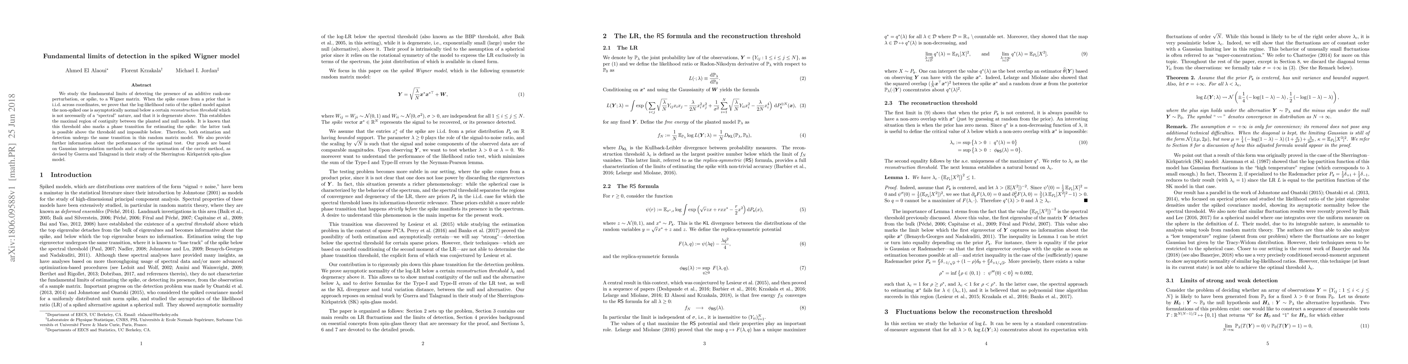 This research paper establishes a fundamental limit on detecting a spike in a Wigner matrix, showing that detection and estimation of the spike transition at the same point, and proving asymptotic normality below this threshold.