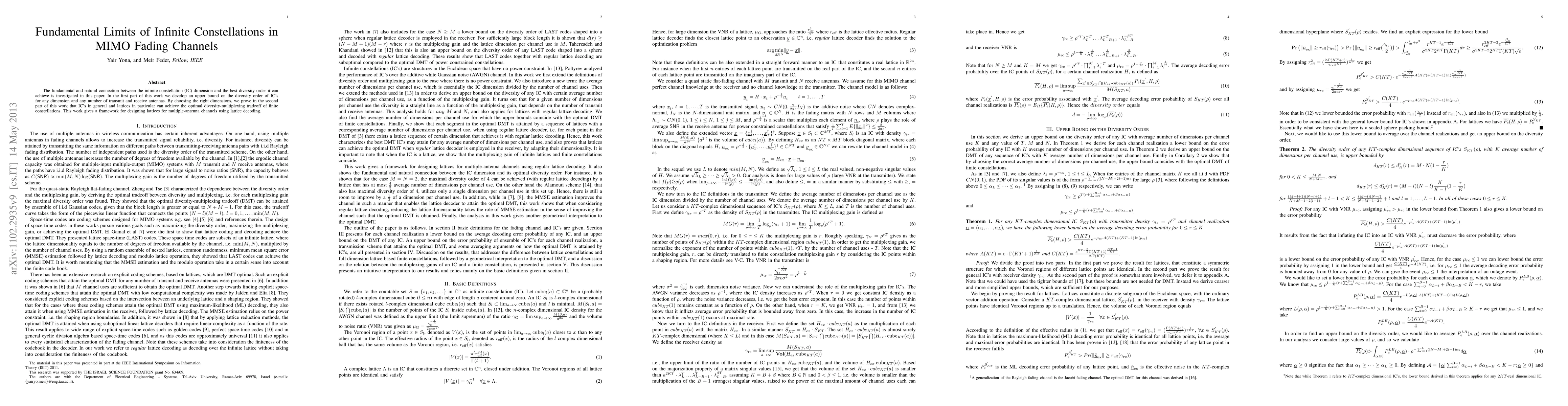 This paper investigates the relationship between infinite constellation dimensions and the diversity order achievable in MIMO fading channels. It develops an upper bound on the diversity order for infinite constellations and demonstrates that lattices can achieve the optimal diversity-multiplexing tradeoff, providing a framework for lattice design for multiple-antenna channels.