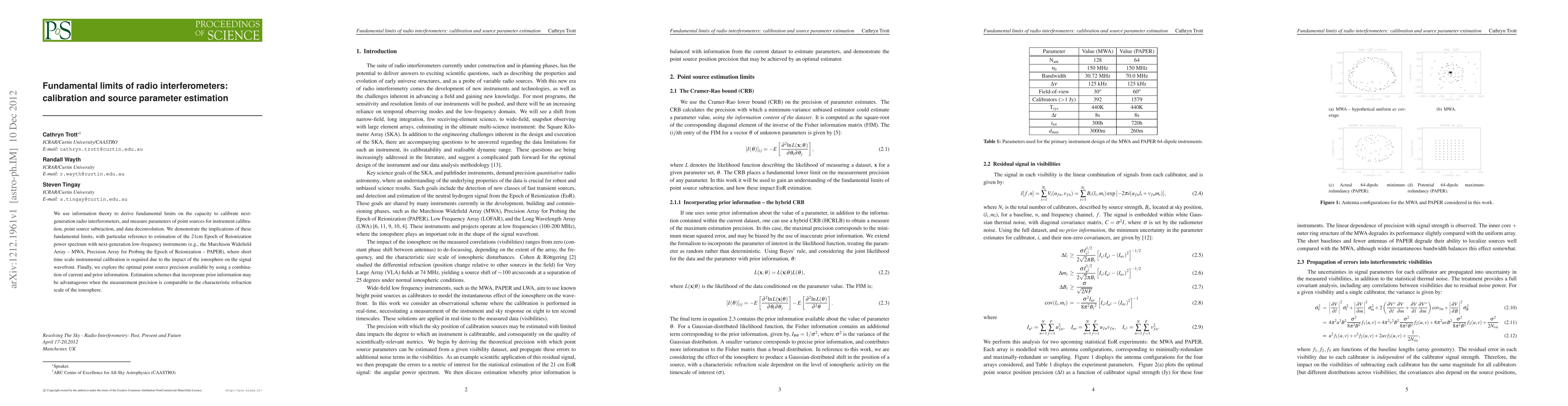 This research paper uses information theory to derive limits on radio interferometer calibration and source parameter estimation, with implications for future low-frequency instruments like the Murchison Widefield Array.