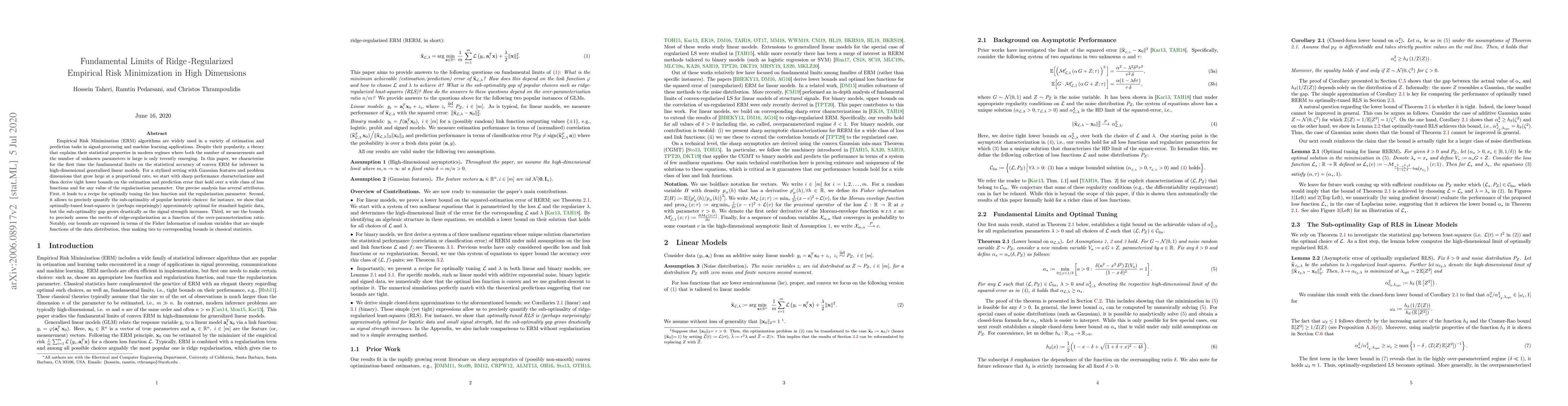 This paper sets fundamental limits on the statistical accuracy of convex Empirical Risk Minimization in high-dimensional generalized linear models, providing a recipe for optimally tuning loss functions and regularization parameters.
