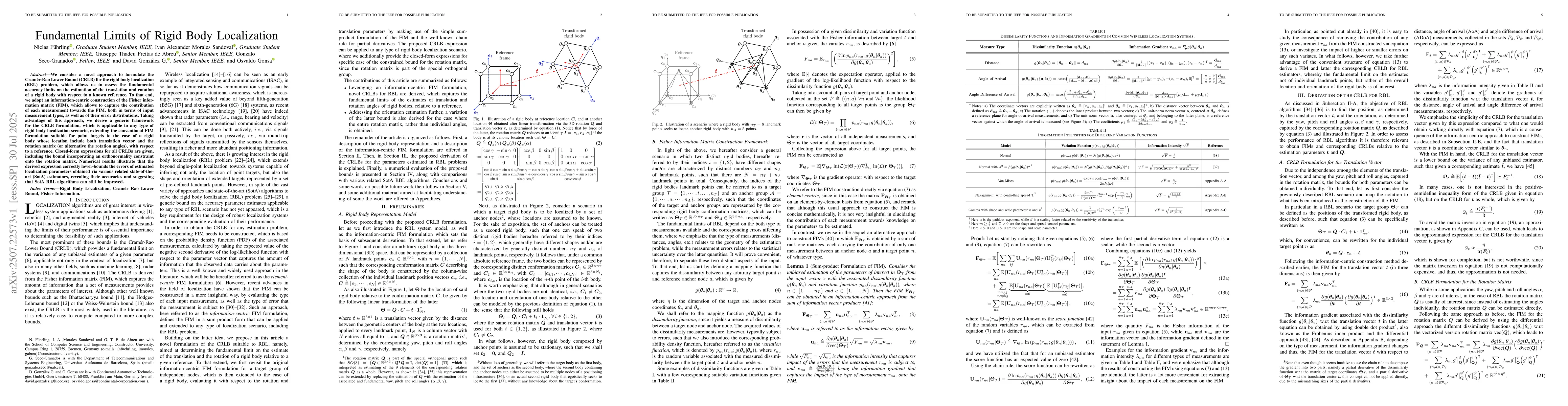 We consider a novel approach to formulate the Cram\'er-Rao Lower Bound (CRLB) for the rigid body localization (RBL) problem, which allows us to assess the fundamental accuracy limits on the estimation of the translation and rotation of a rigid body with respect to a known reference. To that end, we adopt an information-centric construction of the Fisher information matrix (FIM), which allows to capture the contribution of each measurement towards the FIM, both in terms of input measurement types, as well as of their error distributions. Taking advantage of this approach, we derive a generic framework for the CRLB formulation, which is applicable to any type of rigid body localization scenario, extending the conventional FIM formulation suitable for point targets to the case of a rigid body whose location include both translation vector and the rotation matrix (or alternative the rotation angles), with respect to a reference. Closed-form expressions for all CRLBs are given, including the bound incorporating an orthonormality constraint onto the rotation matrix. Numerical results illustrate that the derived expression correctly lower-bounds the errors of estimated localization parameters obtained via various related state-of-the-art (SotA) estimators, revealing their accuracies and suggesting that SotA RBL algorithms can still be improved.