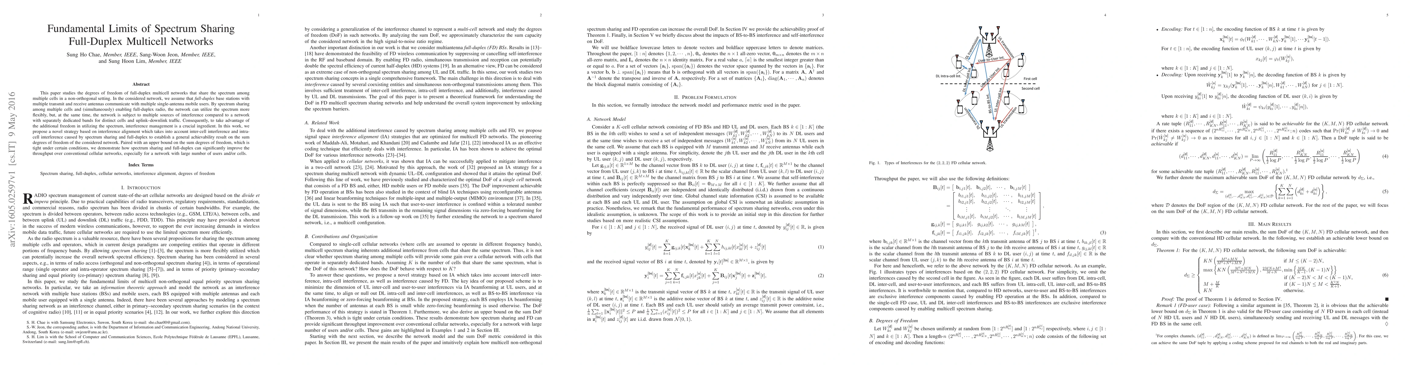 This paper investigates the degrees of freedom in full-duplex multicell networks where spectrum sharing among multiple cells is employed. It proposes an interference alignment strategy to manage interference, demonstrating significant throughput improvements over conventional networks, especially in large-scale deployments.