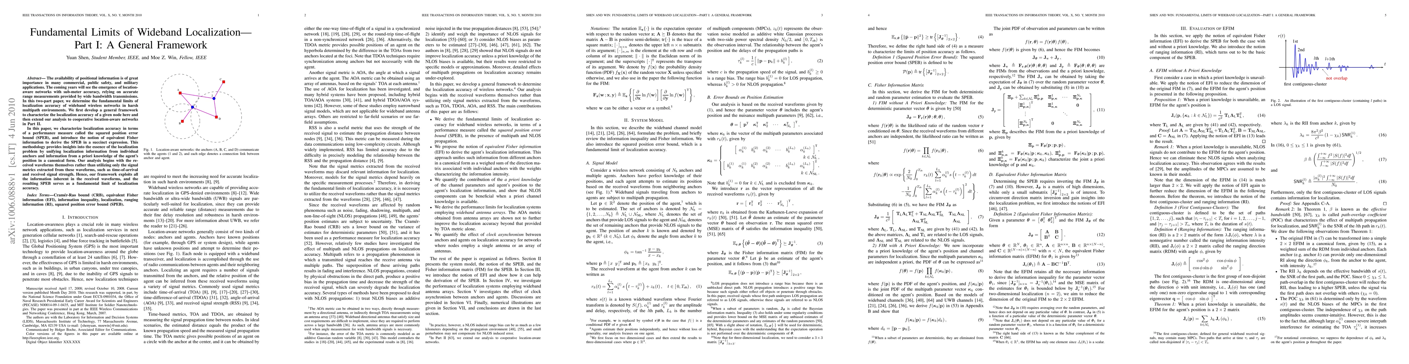 This paper develops a general framework to determine the fundamental limits of localization accuracy in wideband wireless networks, introducing the squared position error bound (SPEB) and equivalent Fisher information to derive a succinct expression for localization performance. The analysis leverages received waveforms directly, providing a comprehensive view of inherent localization information.