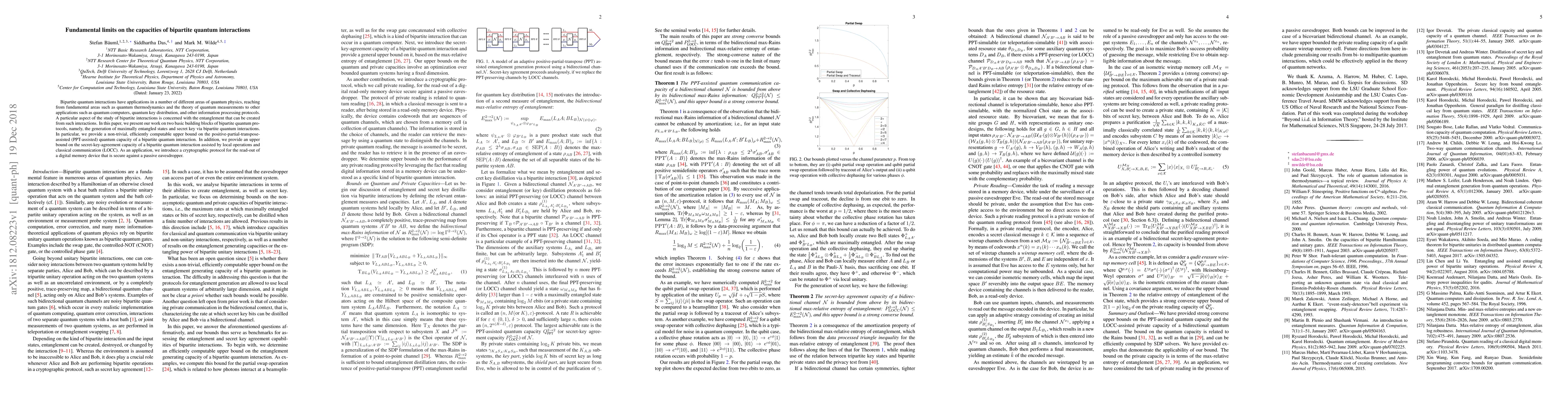 Bipartite quantum interactions have applications in a number of different areas of quantum physics, reaching from fundamental areas such as quantum thermodynamics and the theory of quantum measurements to other applications such as quantum computers, quantum key distribution, and other information processing protocols. A particular aspect of the study of bipartite interactions is concerned with the entanglement that can be created from such interactions. In this Letter, we present our work on two basic building blocks of bipartite quantum protocols, namely, the generation of maximally entangled states and secret key via bipartite quantum interactions. In particular, we provide a nontrivial, efficiently computable upper bound on the positive-partial-transpose-assisted quantum capacity of a bipartite quantum interaction. In addition, we provide an upper bound on the secret-key-agreement capacity of a bipartite quantum interaction assisted by local operations and classical communication. As an application, we introduce a cryptographic protocol for the readout of a digital memory device that is secure against a passive eavesdropper.