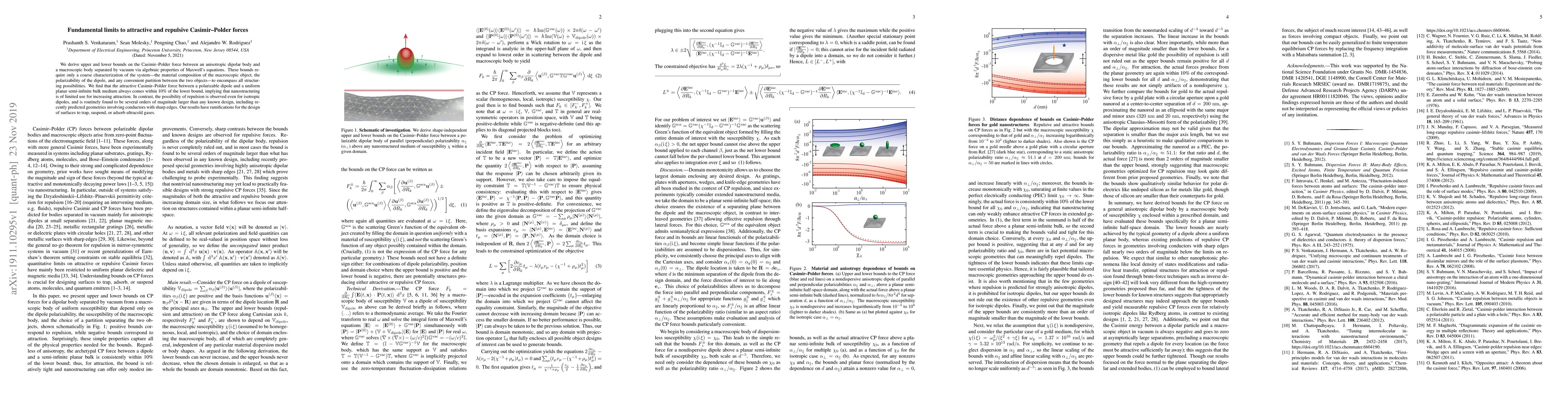 We derive upper and lower bounds on the Casimir--Polder force between an anisotropic dipolar body and a macroscopic body separated by vacuum via algebraic properties of Maxwell's equations. These bounds require only a coarse characterization of the system---the material composition of the macroscopic object, the polarizability of the dipole, and any convenient partition between the two objects---to encompass all structuring possibilities. We find that the attractive Casimir--Polder force between a polarizable dipole and a uniform planar semi-infinite bulk medium always comes within 10% of the lower bound, implying that nanostructuring is of limited use for increasing attraction. In contrast, the possibility of repulsion is observed even for isotropic dipoles, and is routinely found to be several orders of magnitude larger than any known design, including recently predicted geometries involving conductors with sharp edges. Our results have ramifications for the design of surfaces to trap, suspend, or adsorb ultracold gases.