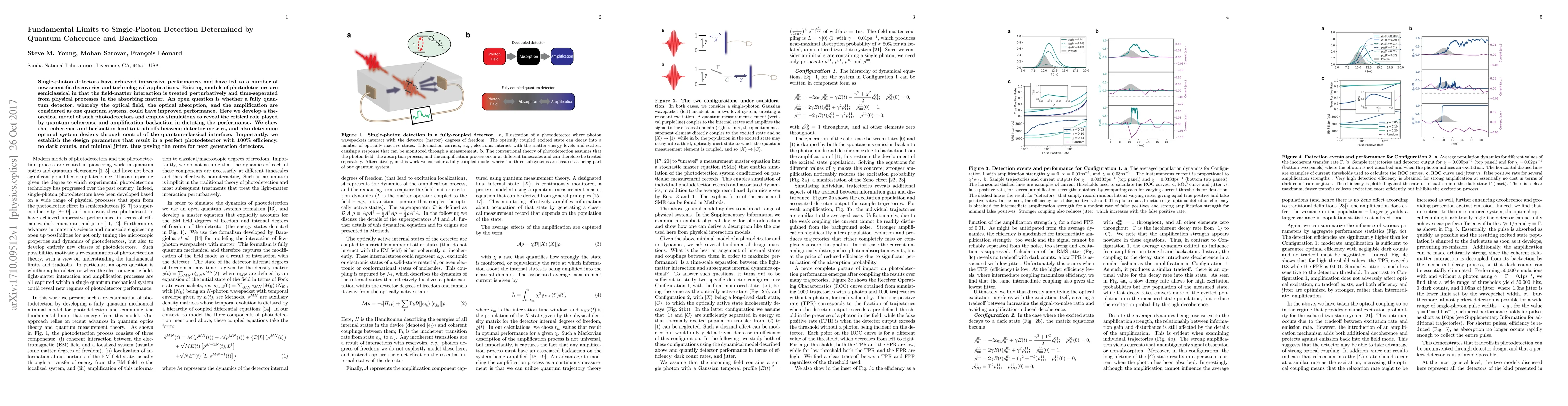 Researchers developed a quantum model of single-photon detectors, revealing that quantum coherence and amplification backaction determine their performance. They identified optimal system designs for 100% efficiency, zero dark counts, and minimal jitter.