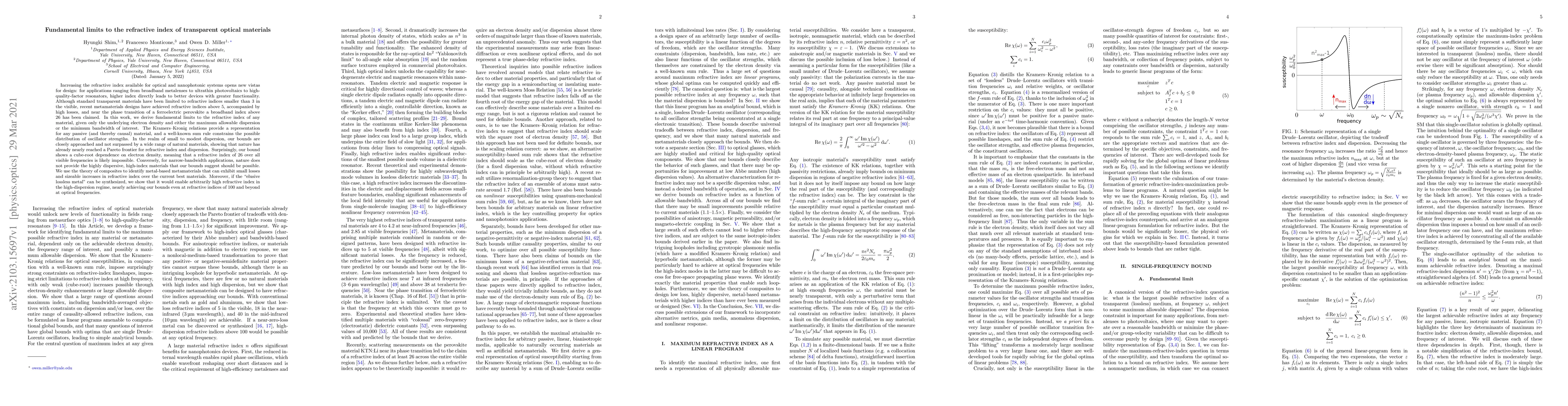 The research derives fundamental limits to the refractive index of transparent optical materials using Kramers-Kronig relations, f-sum rule, and linear programming techniques.