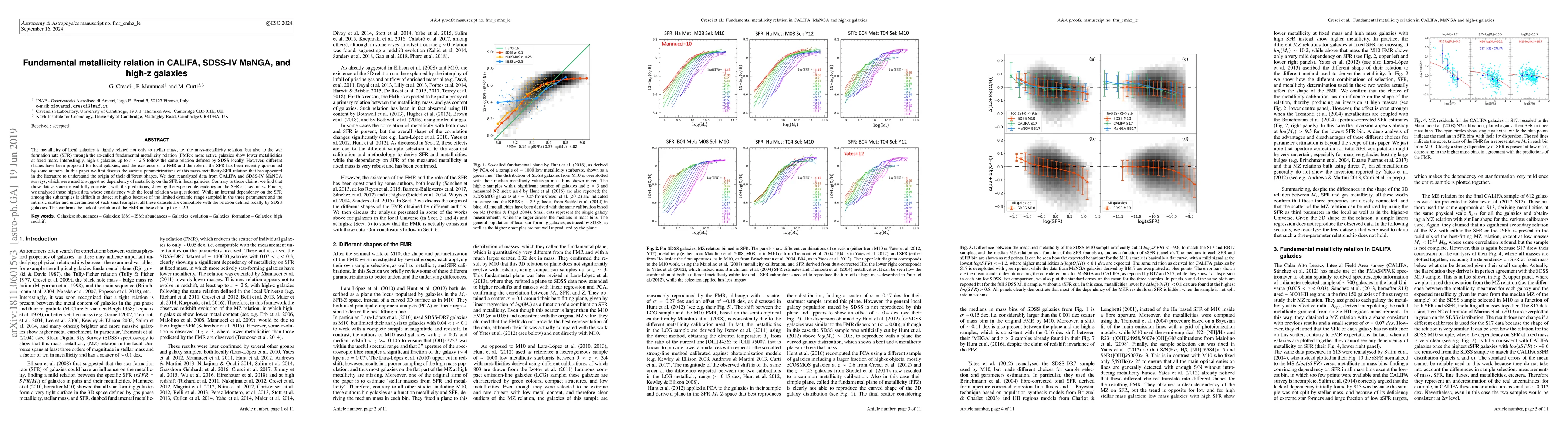 This paper investigates the fundamental metallicity relation (FMR) in local and high-z galaxies, confirming that metallicity depends on both stellar mass and star formation rate (SFR). It refutes claims that local galaxies lack this relationship, showing consistency with the FMR defined by SDSS galaxies, and finds no significant evolution of the FMR up to z~2.5.