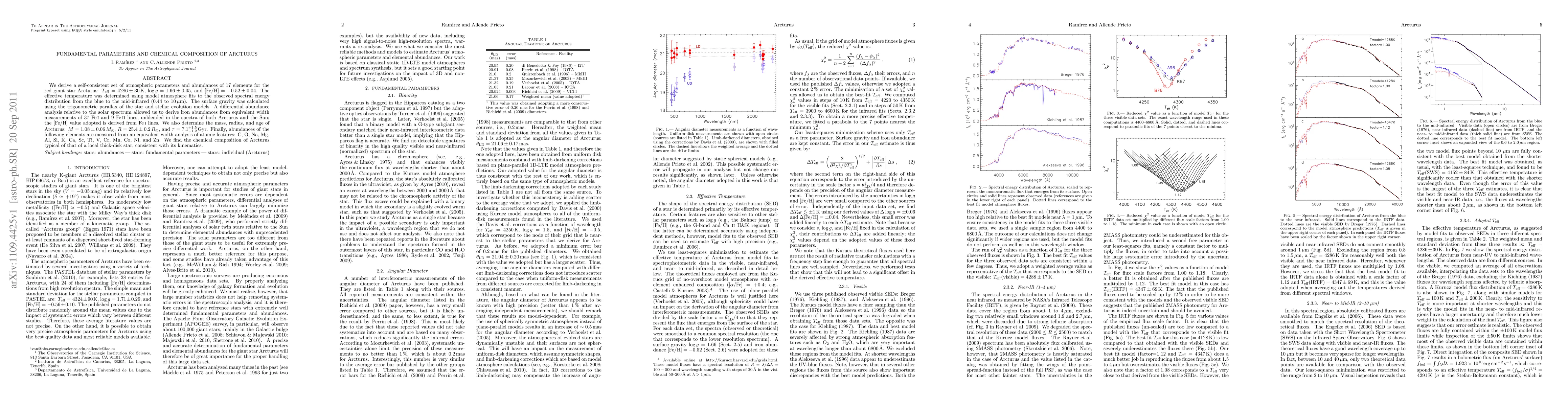 This paper provides a comprehensive analysis of Arcturus, determining its atmospheric parameters, chemical composition, and fundamental stellar properties, including effective temperature, surface gravity, and elemental abundances of 17 elements, revealing a typical thick-disk star composition.