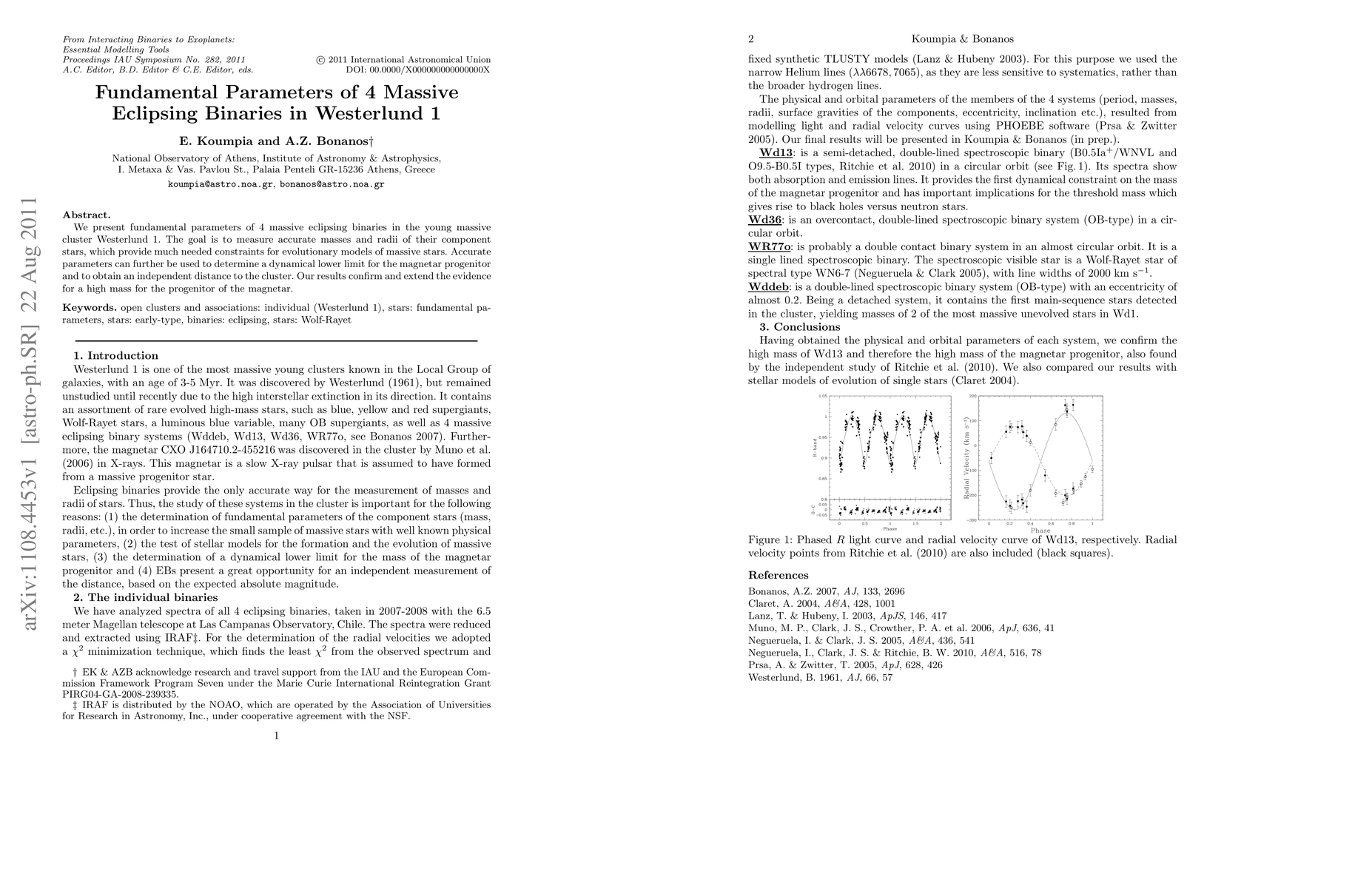 We present fundamental parameters of 4 massive eclipsing binaries in the young massive cluster Westerlund 1. The goal is to measure accurate masses and radii of their component stars, which provide much needed constraints for evolutionary models of massive stars. Accurate parameters can further be used to determine a dynamical lower limit for the magnetar progenitor and to obtain an independent distance to the cluster. Our results confirm and extend the evidence for a high mass for the progenitor of the magnetar.