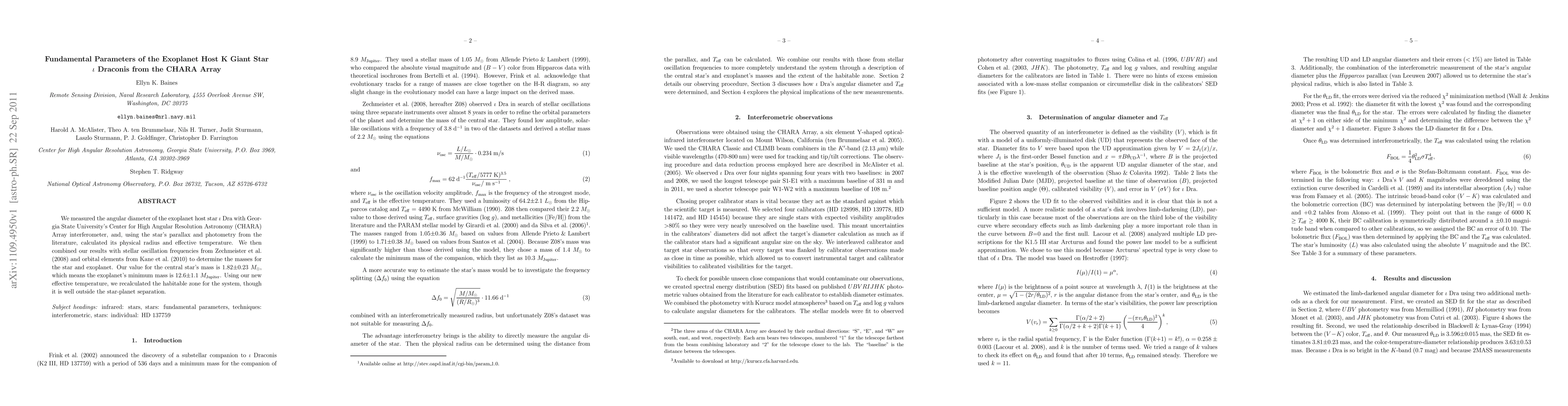 This study utilized the CHARA Array to measure the angular diameter of the exoplanet host star iota Dra, determining its physical radius and effective temperature. The star's mass is found to be 1.82 +/- 0.23 M_Sun, and the exoplanet's minimum mass is 12.6 +/- 1.1 M_Jupiter, with the habitable zone lying outside the star-planet separation.
