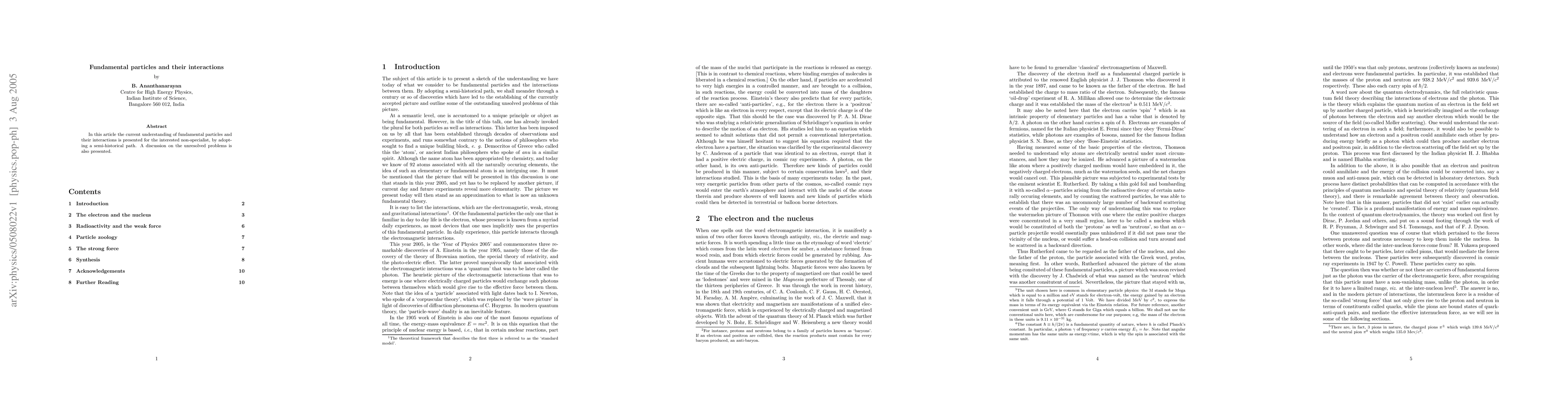 In this article the current understanding of fundamental particles and their interactions is presented for the interested non-specialist, by adopting a semi-historical path. A discussion on the unresolved problems is also presented.