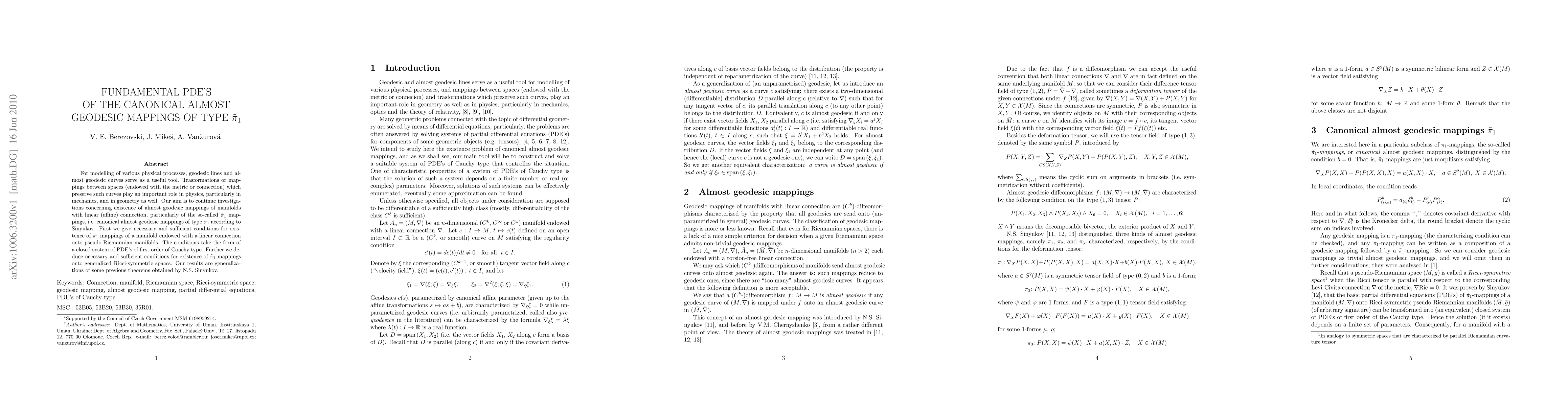 For modelling of various physical processes, geodesic lines and almost geodesic curves serve as a useful tool. Trasformations or mappings between spaces (endowed with a metric or connection) which preserve such curves play an important role in physics, particularly in mechanics, and in geometry as well. Our aim is to continue investigations concerning existence of almost geodesic mappings of manifolds with linear (affine) connection, particularly of the so-called ${\tilde \pi}_1$ mappings, i.e. canonical almost geodesic mappings of type $\pi_1$ according to Sinyukov. First we give necessary and sufficient conditions for existence of ${\tilde \pi}_1$ mappings of a manifold endowed with a linear connection onto pseudo-Riemannian manifolds. The conditions take the form of a closed system of PDE's of first order of Cauchy type. Further we deduce necessary and sufficient conditions for existence of ${\tilde \pi}_1$ mappings onto generalized Ricci-symmetric spaces. Our results are generalizations of some previous theorems obtained by N.S. Sinyukov.