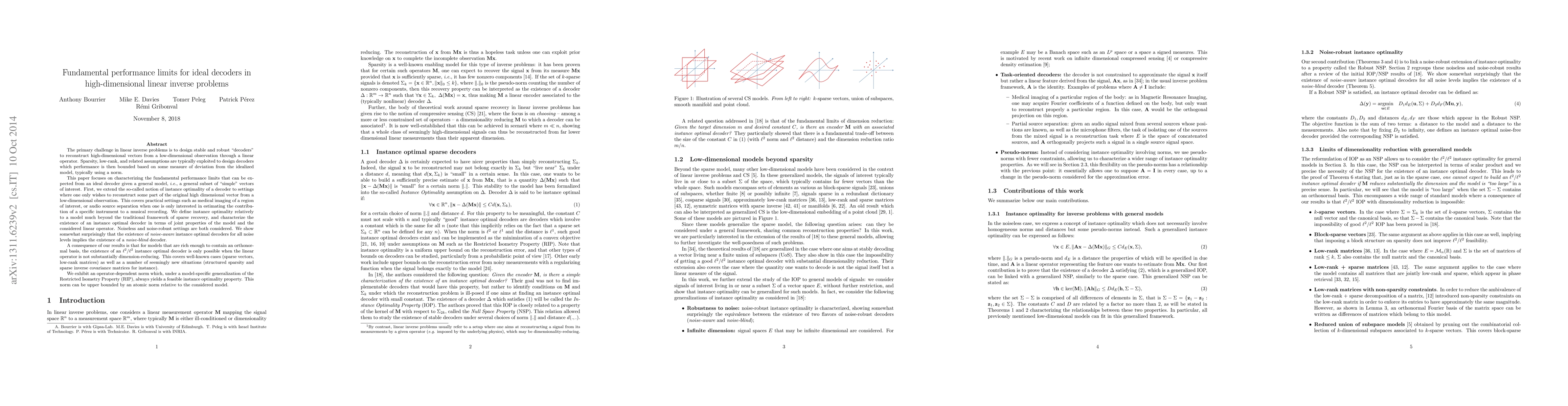 This paper establishes fundamental performance limits for ideal decoders in high-dimensional linear inverse problems, showing that the existence of noise-aware instance optimal decoders implies a noise-blind decoder.