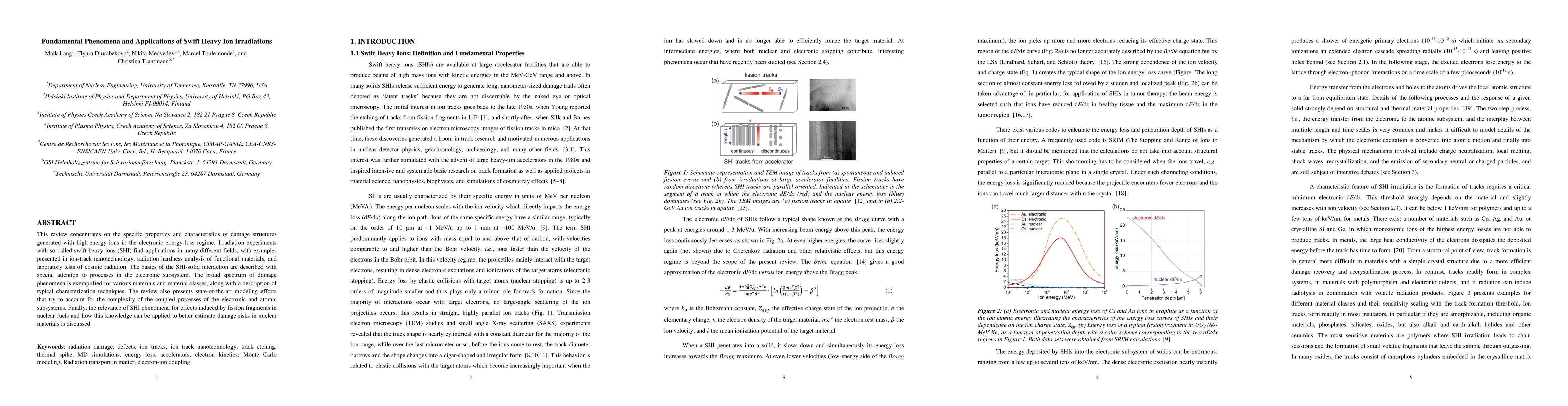 This review explores the fundamental phenomena and applications of swift heavy ion (SHI) irradiations, detailing the damage structures formed in electronic energy loss regimes. It highlights SHI applications in nanotechnology, material radiation hardness, and cosmic radiation testing, and discusses state-of-the-art modeling and its relevance to nuclear fuel damage risks.