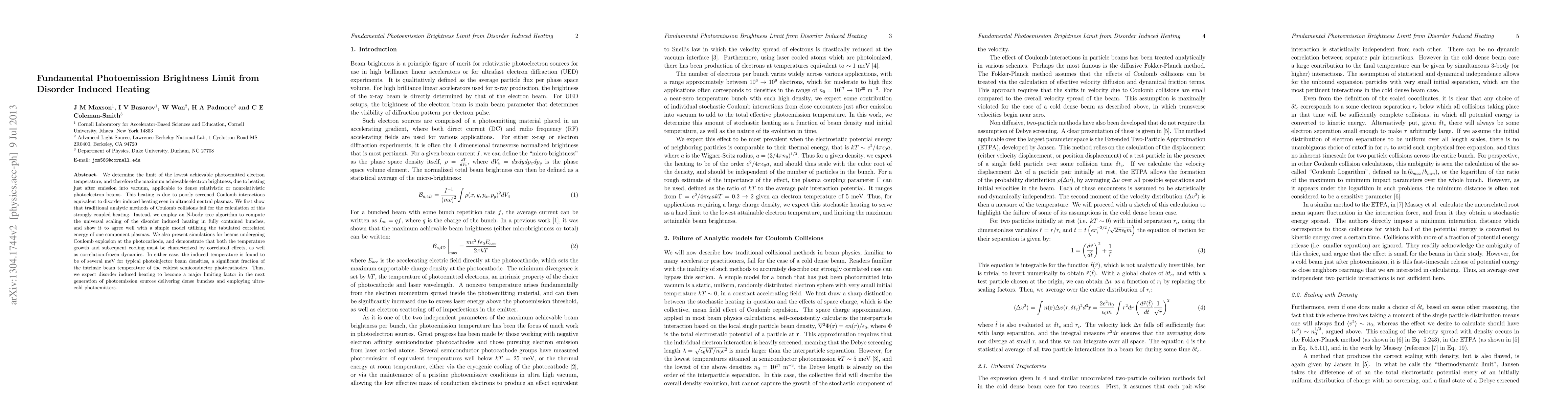 This paper investigates the fundamental limit of photoemission brightness, revealing that disorder-induced heating due to Coulomb interactions limits achievable electron temperatures. Using advanced computational methods, the authors show that this heating significantly impacts the performance of dense electron beams, predicting it to be a major constraint for future photoemission technologies.