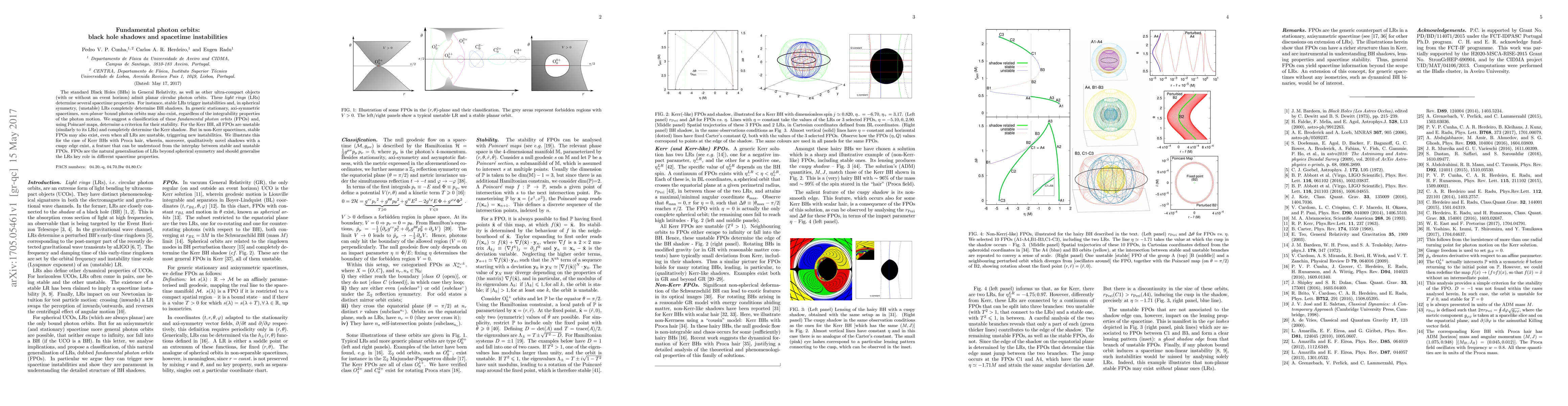 The standard Black Holes (BHs) in General Relativity, as well as other ultra-compact objects (with or without an event horizon) admit planar circular photon orbits. These light rings (LRs) determine several spacetime properties. For instance, stable LRs trigger instabilities and, in spherical symmetry, (unstable) LRs completely determine BH shadows. In generic stationary, axi-symmetric spacetimes, non-planar bound photon orbits may also exist, regardless of the integrability properties of the photon motion. We suggest a classification of these fundamental photon orbits (FPOs) and, using Poincar\'e maps, determine a criterion for their stability. For the Kerr BH, all FPOs are unstable (similarly to its LRs) and completely determine the Kerr shadow. But in non-Kerr spacetimes, stable FPOs may also exist, even when all LRs are unstable, triggering new instabilities. We illustrate this for the case of Kerr BHs with Proca hair, wherein, moreover, qualitatively novel shadows with a cuspy edge exist, a feature that can be understood from the interplay between stable and unstable FPOs. FPOs are the natural generalisation of LRs beyond spherical symmetry and should generalise the LRs key role in different spacetime properties.