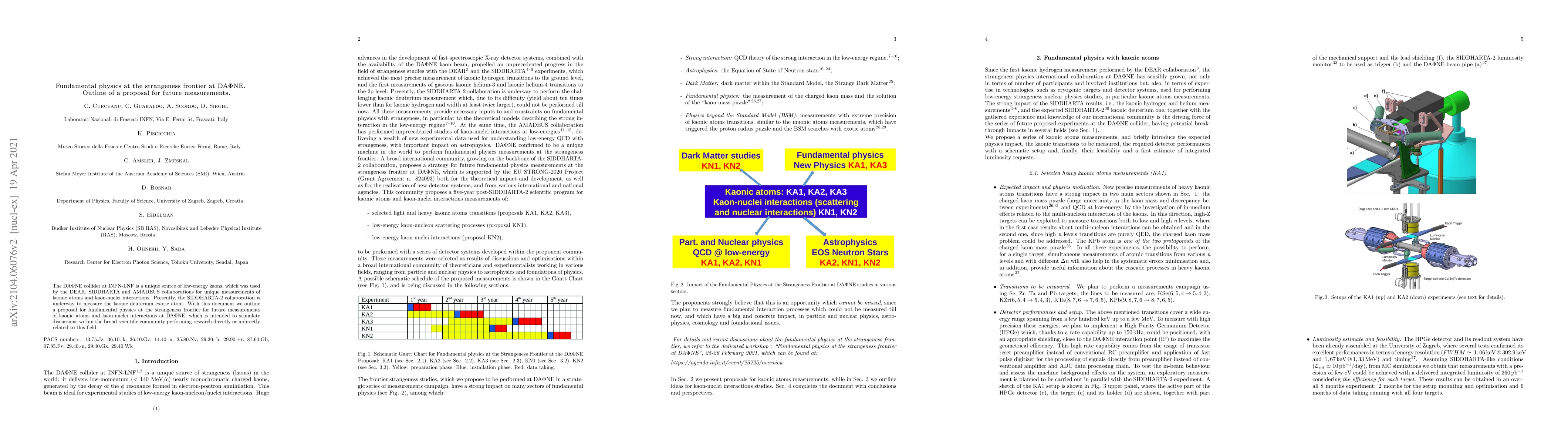 The DA{\Phi}NE collider provides a unique source of low-energy kaons for studying kaonic atoms and kaon-nuclei interactions. This paper proposes future measurements at DA{\Phi}NE to advance fundamental physics research at the strangeness frontier, stimulating broader scientific community discussions.