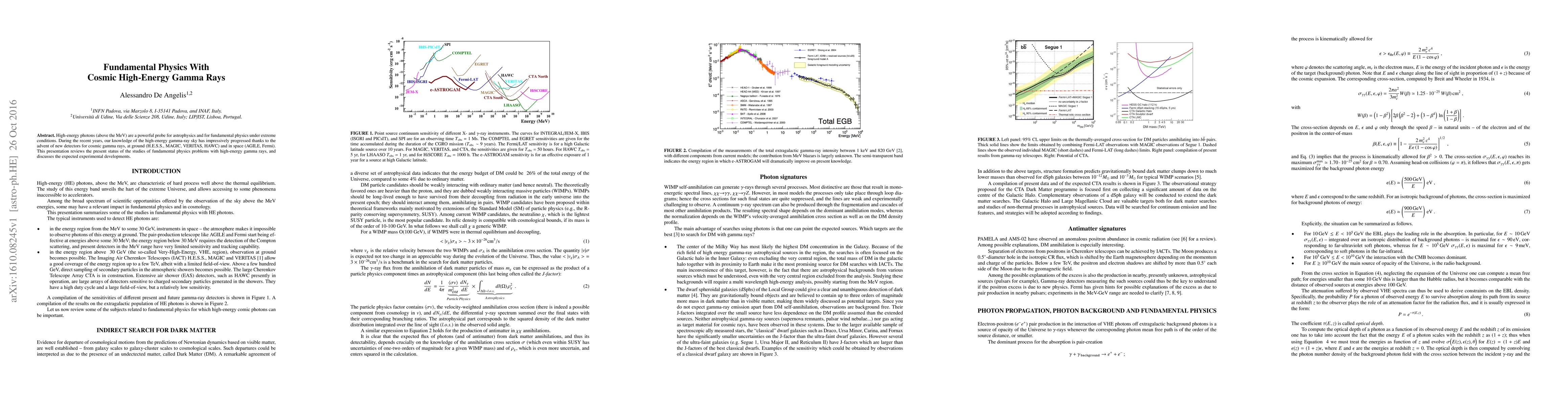High-energy photons (above the MeV) are a powerful probe for astrophysics and for fundamental physics under extreme conditions. During the recent years, our knowledge of the high-energy gamma-ray sky has impressively progressed thanks to the advent of new detectors for cosmic gamma rays, at ground (H.E.S.S., MAGIC, VERITAS, HAWC) and in space (AGILE, Fermi). This presentation reviews the present status of the studies of fundamental physics problems with high-energy gamma rays, and discusses the expected experimental developments.