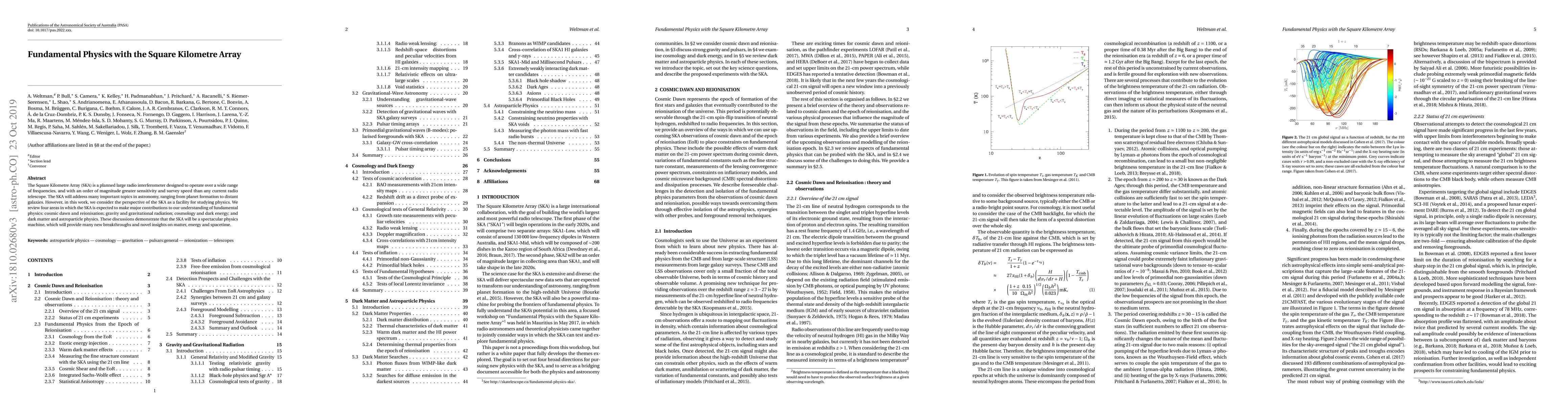 The Square Kilometre Array (SKA) is set to revolutionize fundamental physics by significantly enhancing our understanding of cosmic dawn, reionization, gravitational phenomena, cosmology, dark energy, and dark matter through its unprecedented sensitivity and survey speed. The SKA promises groundbreaking discoveries and novel insights into the nature of matter, energy, and spacetime.
