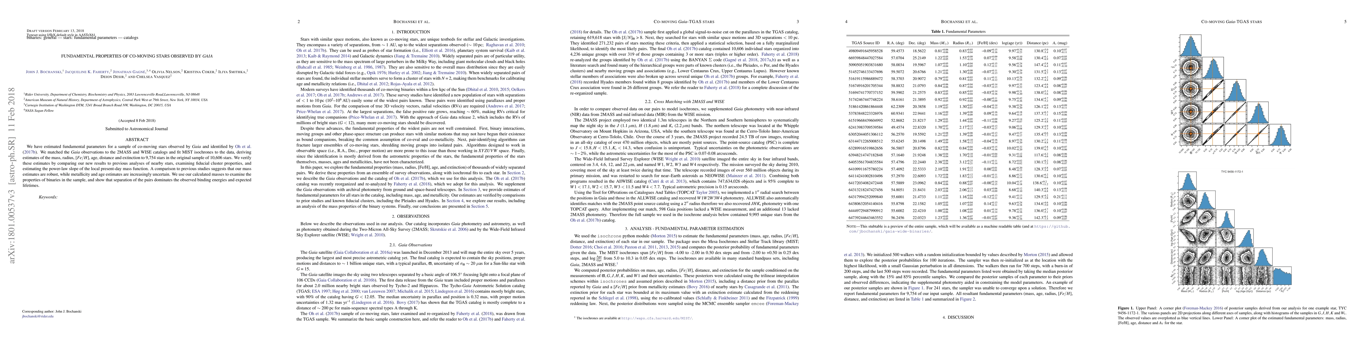 Researchers analyzed 9,754 co-moving stars to estimate their fundamental parameters, finding robust mass estimates but uncertain metallicity and age values. They also studied the properties of binaries in the sample, showing that separation dominates observed binding energies and expected lifetimes.