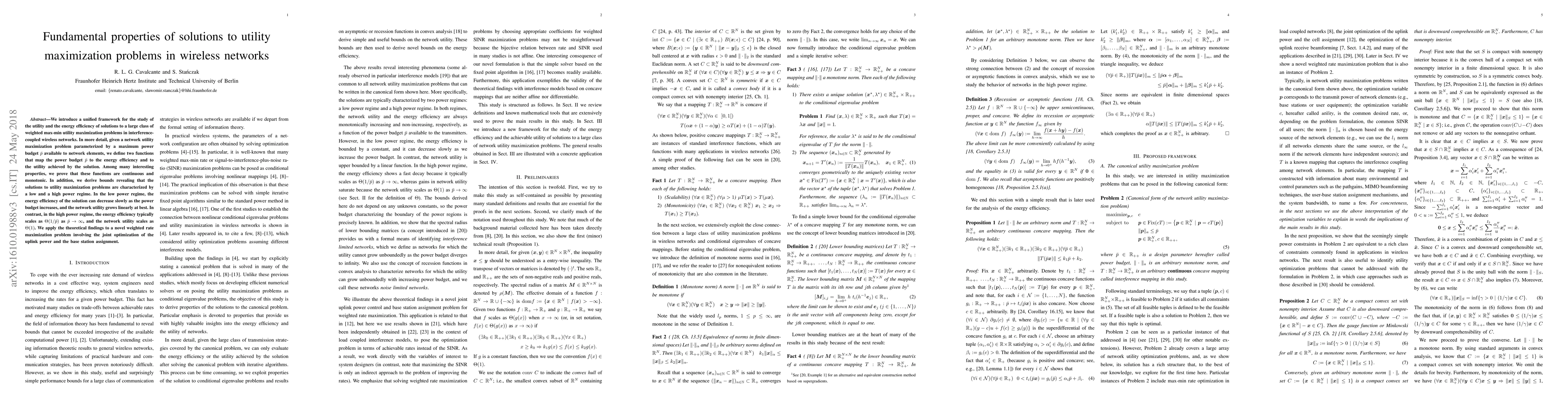 This paper presents a unified framework for analyzing utility and energy efficiency in wireless networks, proving the continuity and monotonicity of functions mapping power budgets to these metrics. It identifies distinct low and high power regimes, showing different scaling behaviors for energy efficiency and network utility.
