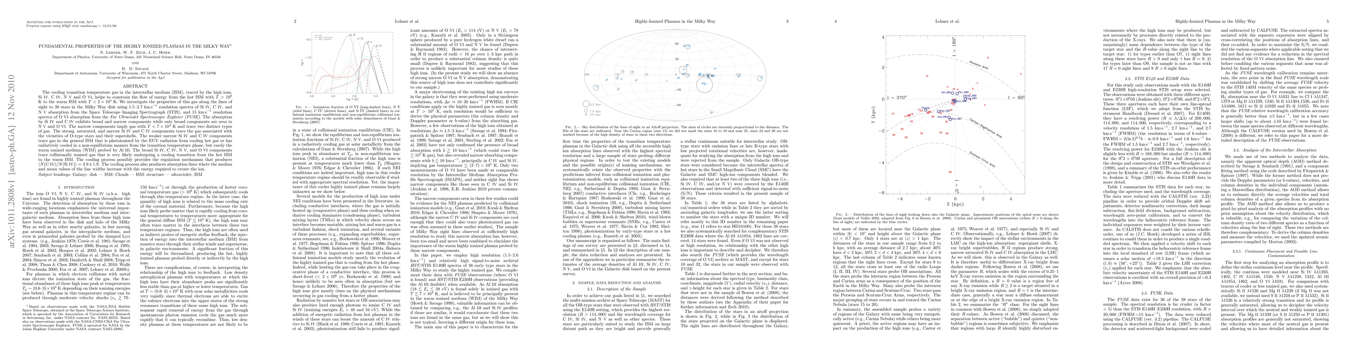 The cooling transition temperature gas in the interstellar medium (ISM), traced by the high ions, Si IV, C IV, N V, and O VI, helps to constrain the flow of energy from the hot ISM with T >10^6 K to the warm ISM with T< 2x10^4 K. We investigate the properties of this gas along the lines of sight to 38 stars in the Milky Way disk using 1.5-2.7 km/s resolution spectra of Si IV, C IV, and N V absorption from the Space Telescope Imaging Spectrograph (STIS), and 15 km/s resolution spectra of O VI absorption from the Far Ultraviolet Spectroscopic Explorer (FUSE). The absorption by Si IV and C IV exhibits broad and narrow components while only broad components are seen in N V and O VI. The narrow components imply gas with T<7x10^4 K and trace two distinct types of gas. The strong, saturated, and narrow Si IV and C IV components trace the gas associated with the vicinities of O-type stars and their supershells. The weaker narrow Si IV and C IV components trace gas in the general ISM that is photoionized by the EUV radiation from cooling hot gas or has radiatively cooled in a non-equilibrium manner from the transition temperature phase, but rarely the warm ionized medium (WIM) probed by Al III. The broad Si IV, C IV, N V, and O VI components trace collisionally ionized gas that is very likely undergoing a cooling transition from the hot ISM to the warm ISM. The cooling process possibly provides the regulation mechanism that produces N(C IV)/N(Si IV) = 3.9 +/- 1.9. The cooling process also produces absorption lines where the median and mean values of the line widths increase with the energy required to create the ion.