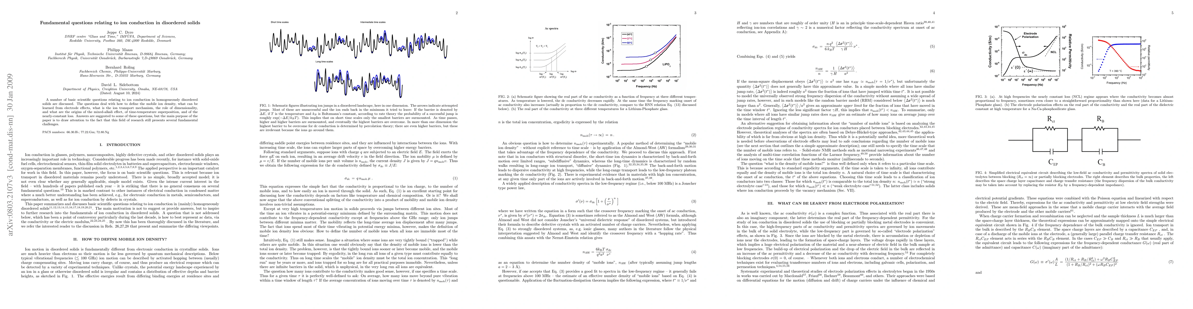 Researchers explore fundamental questions about ion conduction in disordered solids, highlighting challenges in understanding mobile ion density, transport mechanisms, and effects of dimensionality.