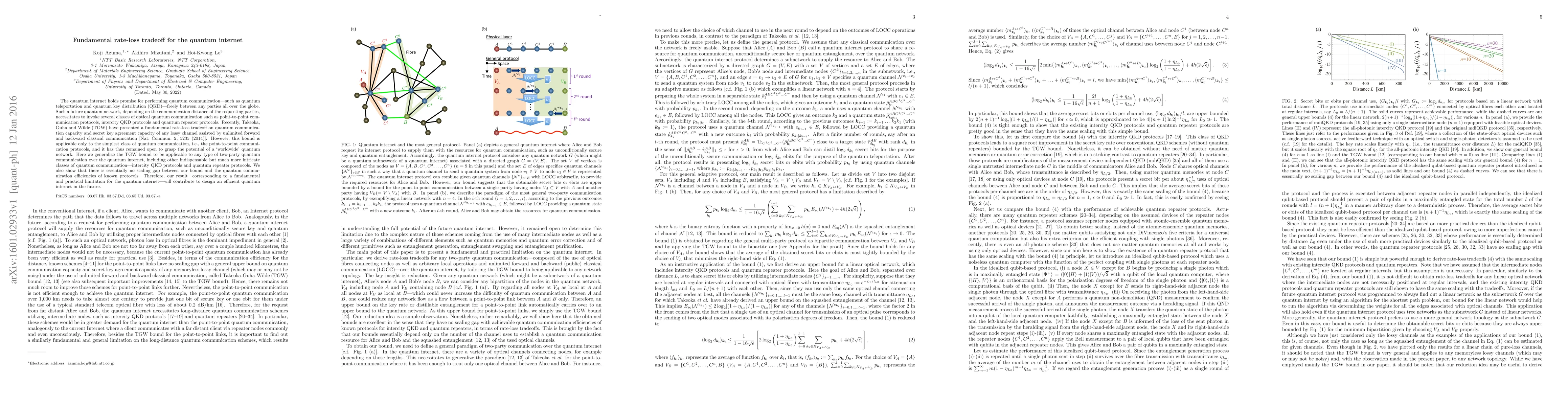 This paper generalizes the fundamental rate-loss tradeoff for quantum communication to encompass various protocols beyond point-to-point, including intercity QKD and quantum repeater protocols. It demonstrates minimal efficiency gap between the theoretical bound and existing protocols, establishing a practical limitation for the quantum internet's design.
