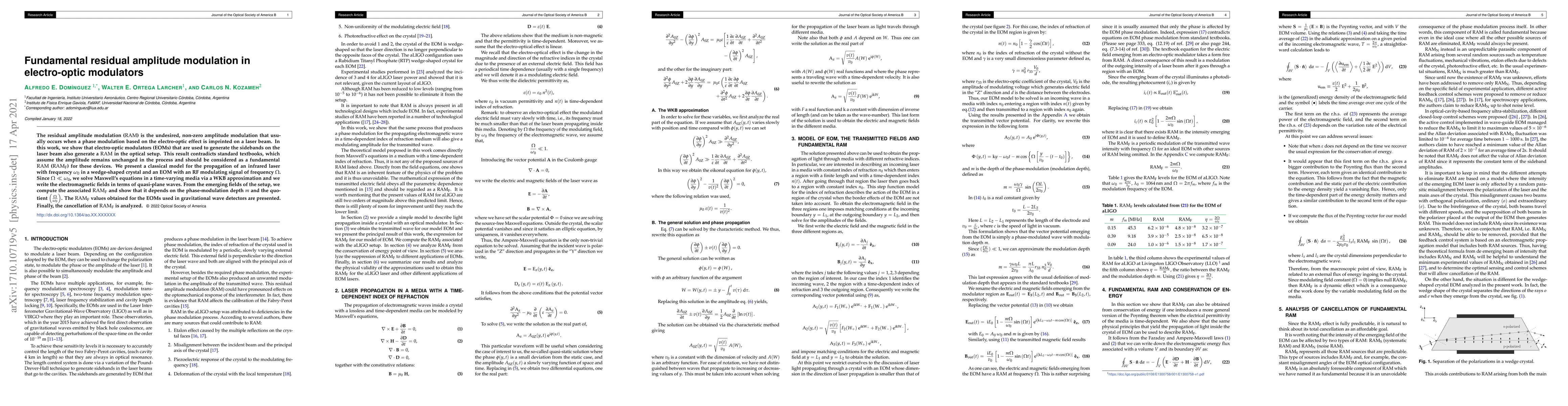 The residual amplitude modulation ($\mathrm{RAM}$) is the undesired, non-zero amplitude modulation that usually occurs when a phase modulation based on the electro-optic effect is imprinted on a laser beam. In this work, we show that electro-optic modulators (EOMs) that are used to generate the sidebands on the laser beam also generate a $\mathrm{RAM}$ in the optical setup. This result contradicts standard textbooks, which assume the amplitude remains unchanged in the process and should be considered as a fundamental $\mathrm{RAM}$ ($\mathrm{RAM_{F}}$) for these devices. We present a classical model for the propagation of an infrared laser with frequency $\omega_{0}$ in a wedge-shaped crystal and an EOM with an RF modulating signal of frequency $\Omega$. Since ${\Omega}\ll \omega_{0}$, we solve Maxwell's equations in a time-varying media via a WKB approximation and we write the electromagnetic fields in terms of quasi-plane waves. From the emerging fields of the setup, we compute the associated $\mathrm{RAM_{F}}$ and show that it depends on the phase-modulation depth $m$ and the quotient $\left(\frac{\Omega}{\omega_{0}}\right)$. The $\mathrm{RAM_{F}}$ values obtained for the EOMs used in gravitational wave detectors are presented. Finally, the cancellation of $\mathrm{RAM_{F}}$ is analyzed.