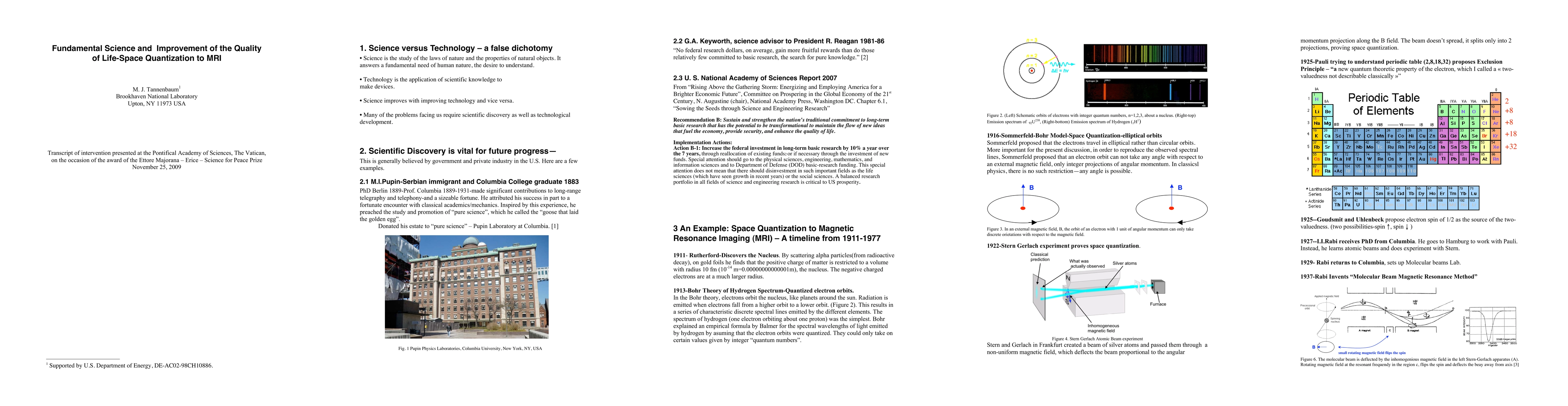 How the fundamental and purely quantum mechanical concept of space quantization and intrinsic spin led to totally unanticipated practical improvements to the Quality of Life such as Magnetic Resonance Imaging, atomic clocks, etc. This is just one example of the importance of discoveries in fundamental science that are necessary in order achieve future progress via revolutionary practical applications which improve the quality of life. The importance educating the general populace with a broad knowledge of science is emphasized, as well as the need for specialized education for future scientists.