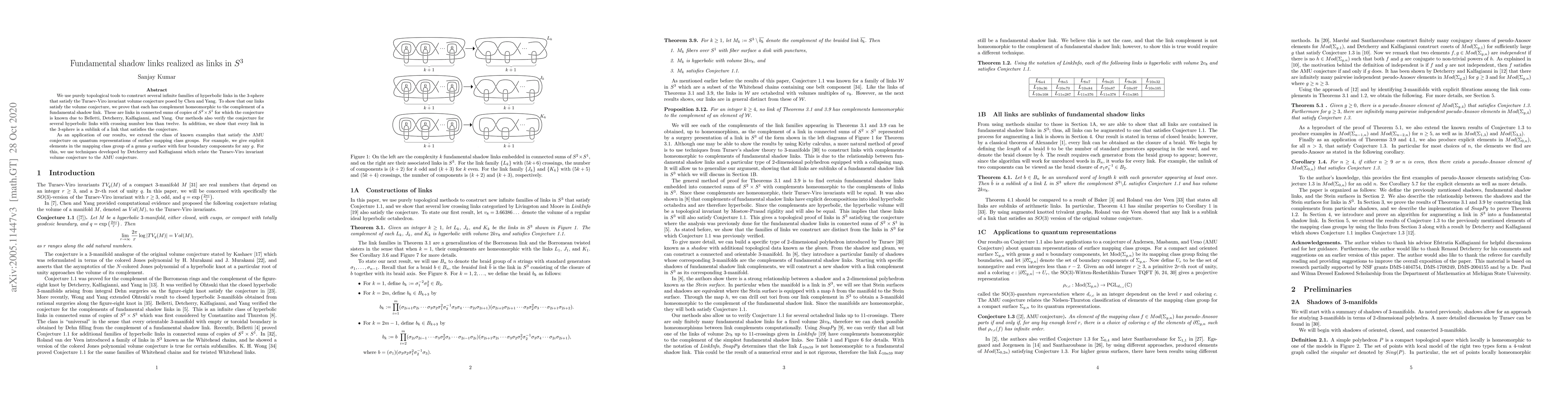 We use purely topological tools to construct several infinite families of hyperbolic links in the 3-sphere that satisfy the Turaev-Viro invariant volume conjecture posed by Chen and Yang. To show that our links satisfy the volume conjecture, we prove that each has complement homeomorphic to the complement of a fundamental shadow link. These are links in connected sums of copies of $S^2 \times S^1$ for which the conjecture is known due to Belletti, Detcherry, Kalfagianni, and Yang. Our methods also verify the conjecture for several hyperbolic links with crossing number less than twelve. In addition, we show that every link in the $3$-sphere is a sublink of a link that satisfies the conjecture. As an application of our results, we extend the class of known examples that satisfy the AMU conjecture on quantum representations of surface mapping class groups. For example, we give explicit elements in the mapping class group of a genus $g$ surface with four boundary components for any $g$. For this, we use techniques developed by Detcherry and Kalfagianni which relate the Turaev-Viro invariant volume conjecture to the AMU conjecture.
