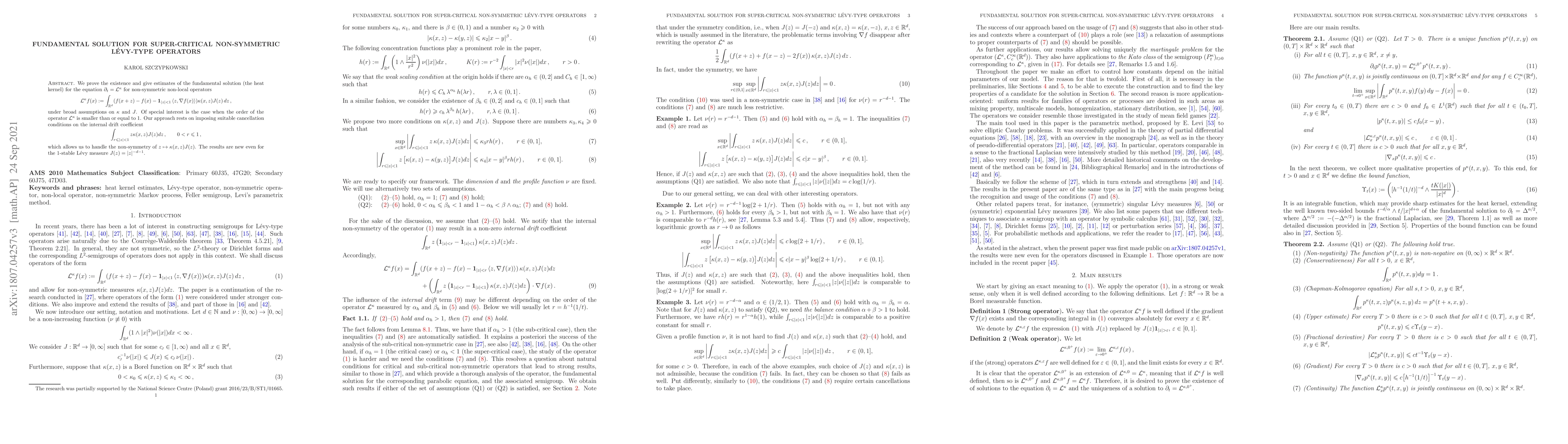 non-symmetric non-local operators $$ \mathcal{L}^{\kappa}f(x):=