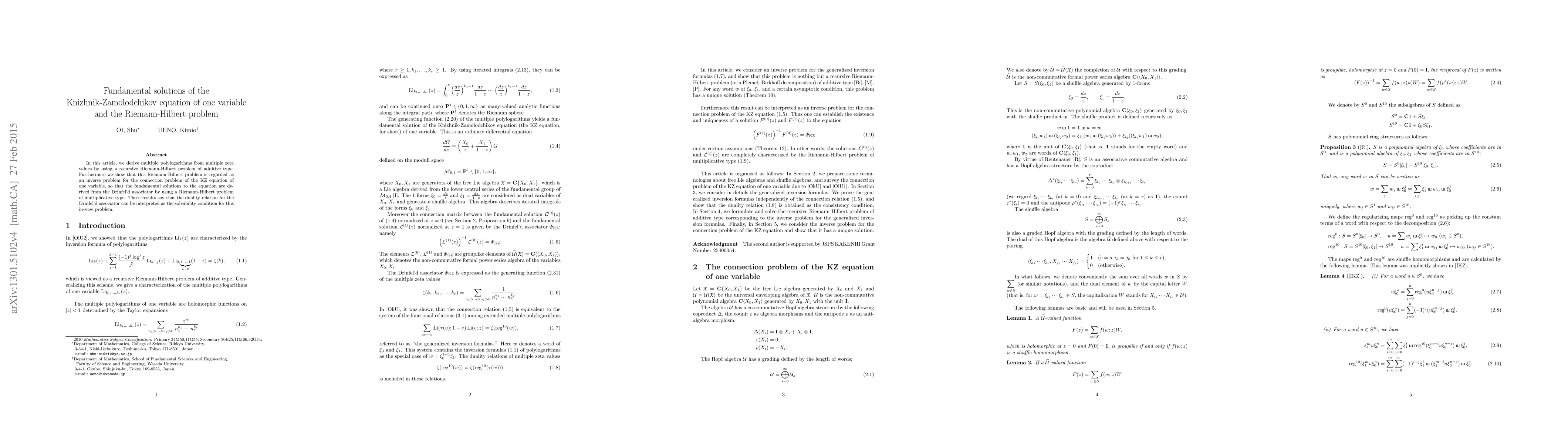 This paper derives multiple polylogarithms from multiple zeta values via a recursive Riemann-Hilbert problem, linking it to the KZ equation's connection problem. The fundamental solutions of the KZ equation are obtained from the Drinfel'd associator using a Riemann-Hilbert problem, revealing a duality relation as a solvability condition.
