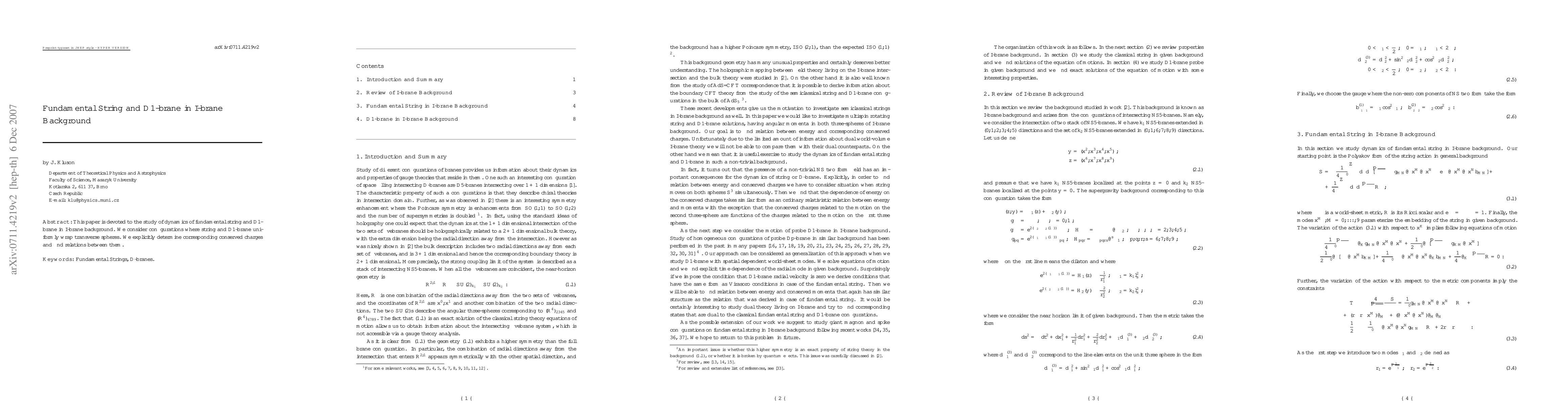 This paper is devoted to the study of dynamics of fundamental string and D1-brane in I-brane background. We consider configurations where string and D1-brane uniformly wrap transverse spheres. We explicitly determine corresponding conserved charges and find relations between them.