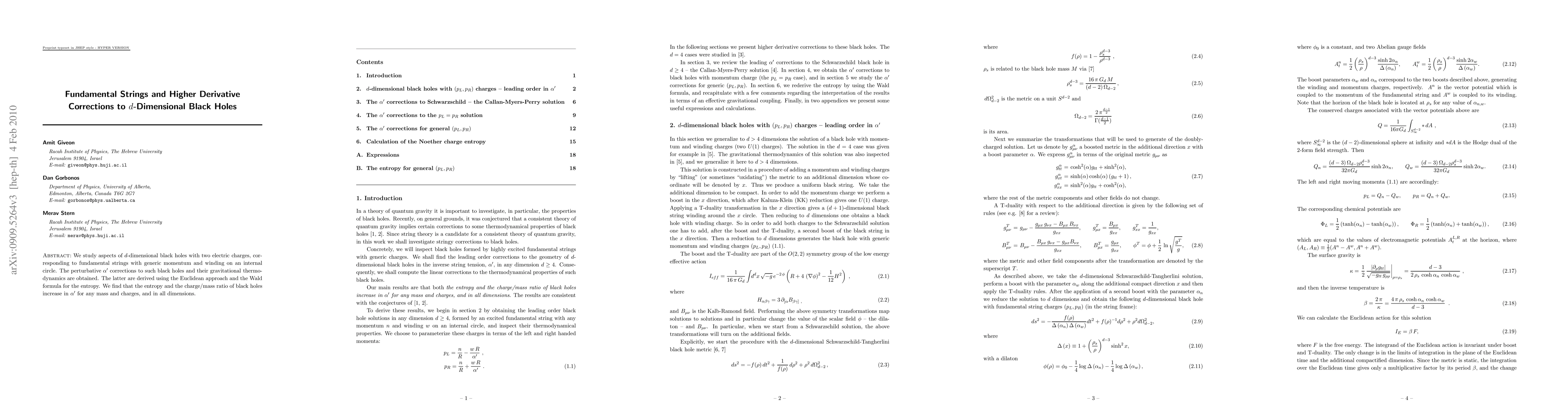 We study aspects of d-dimensional black holes with two electric charges, corresponding to fundamental strings with generic momentum and winding on an internal circle. The perturbative alpha' corrections to such black holes and their gravitational thermodynamics are obtained. The latter are derived using the Euclidean approach and the Wald formula for the entropy. We find that the entropy and the charge/mass ratio of black holes increase in alpha' for any mass and charges, and in all dimensions.