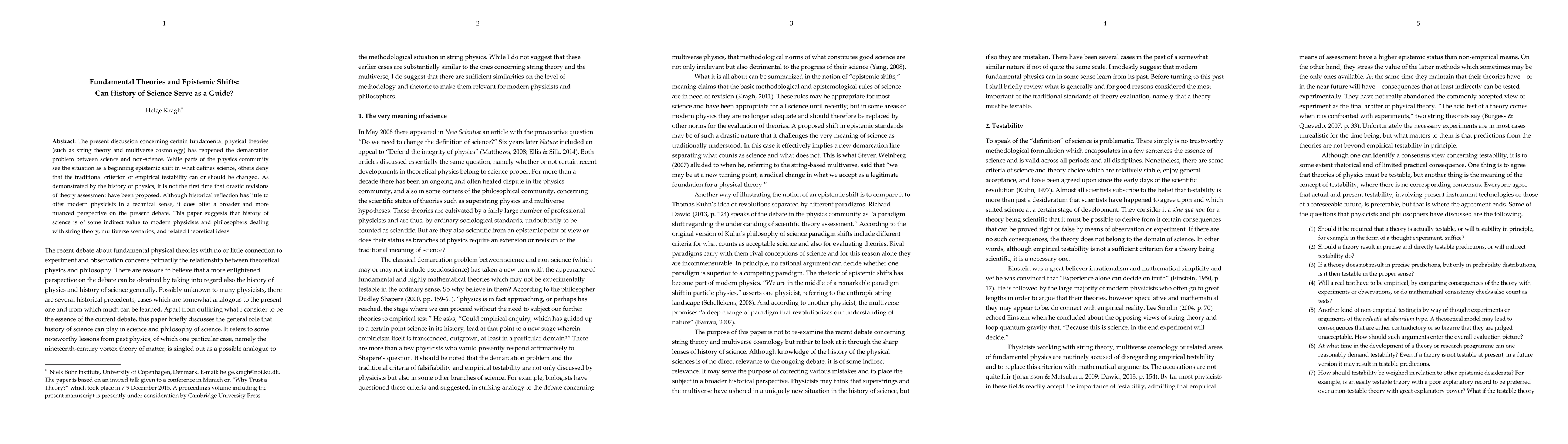 The present discussion concerning certain fundamental physical theories (such as string theory and multiverse cosmology) has reopened the demarcation problem between science and non-science. While parts of the physics community see the situation as a beginning epistemic shift in what defines science, others deny that the traditional criterion of empirical testability can or should be changed. As demonstrated by the history of physics, it is not the first time that drastic revisions of theory assessment have been proposed. Although historical reflection has little to offer modern physicists in a technical sense, it does offer a broader and more nuanced perspective on the present debate. This paper suggests that history of science is of some indirect value to modern physicists and philosophers dealing with string theory, multiverse scenarios, and related theoretical ideas.