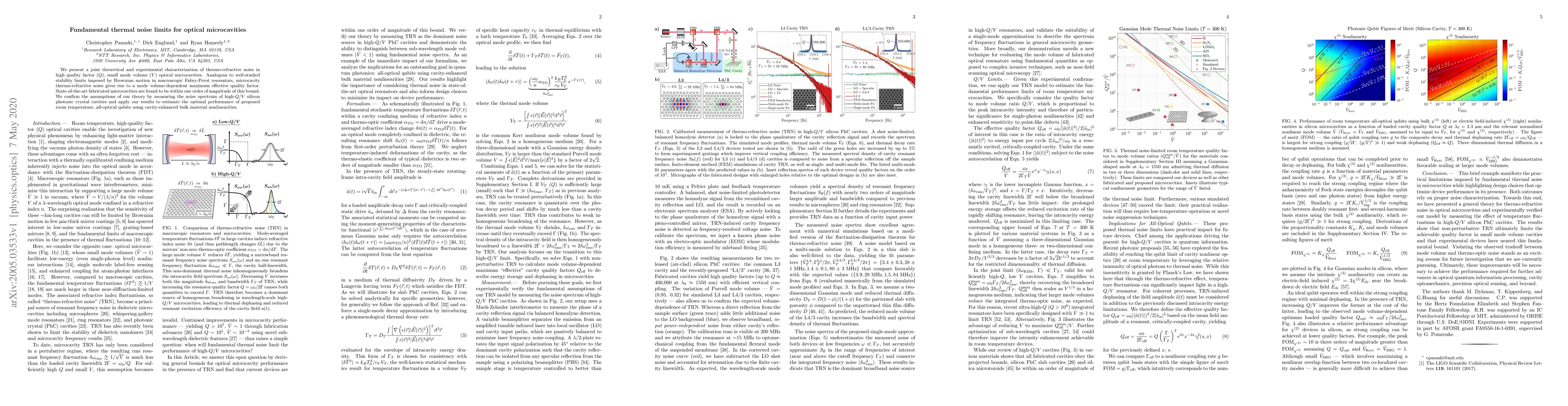 We present a joint theoretical and experimental characterization of thermo-refractive noise in high quality factor ($Q$), small mode volume ($V$) optical microcavities. Analogous to well-studied stability limits imposed by Brownian motion in macroscopic Fabry-Perot resonators, microcavity thermo-refractive noise gives rise to a mode volume-dependent maximum effective quality factor. State-of-the-art fabricated microcavities are found to be within one order of magnitude of this bound. We confirm the assumptions of our theory by measuring the noise spectrum of high-$Q/V$ silicon photonic crystal cavities and apply our results to estimate the optimal performance of proposed room temperature, all-optical qubits using cavity-enhanced bulk material nonlinearities.