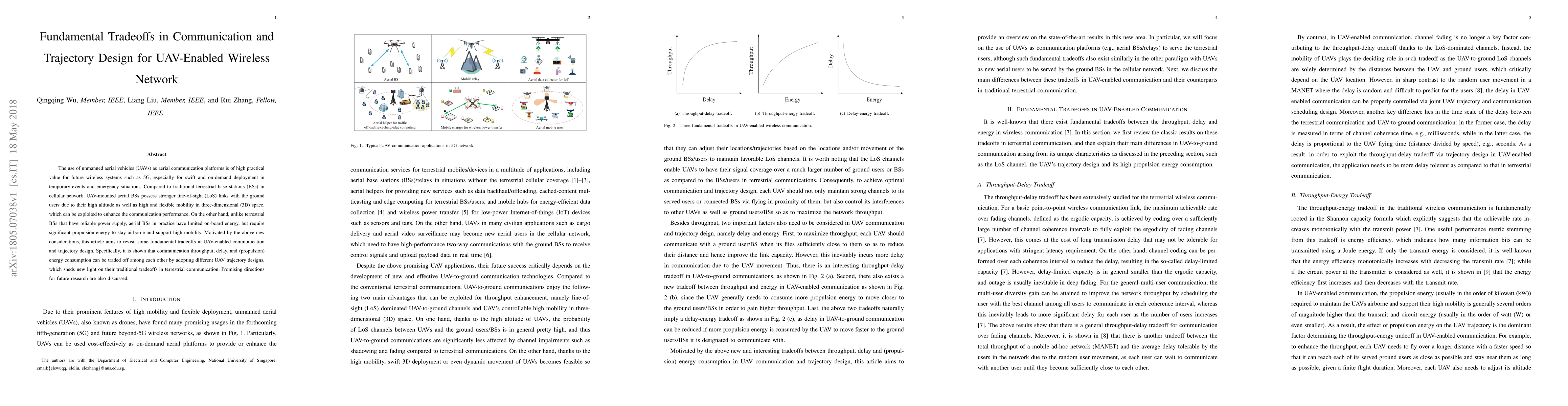 The paper revisits fundamental tradeoffs in UAV-enabled communication and trajectory design, analyzing throughput, delay, and energy consumption through mathematical modeling and optimization techniques.