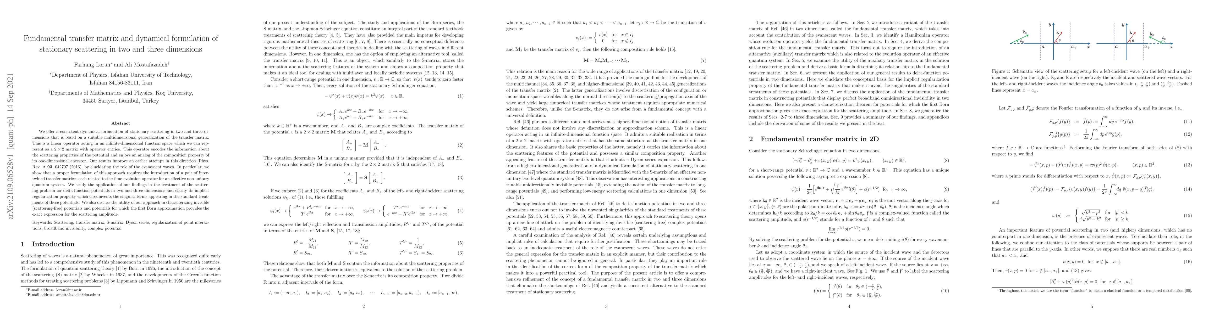 This paper presents a dynamical formulation of stationary scattering based on a multidimensional transfer matrix, addressing the role of evanescent waves and introducing intertwined transfer matrices for effective non-unitary quantum systems. The approach clarifies regularization properties for delta-function potentials and characterizes scattering-free potentials.