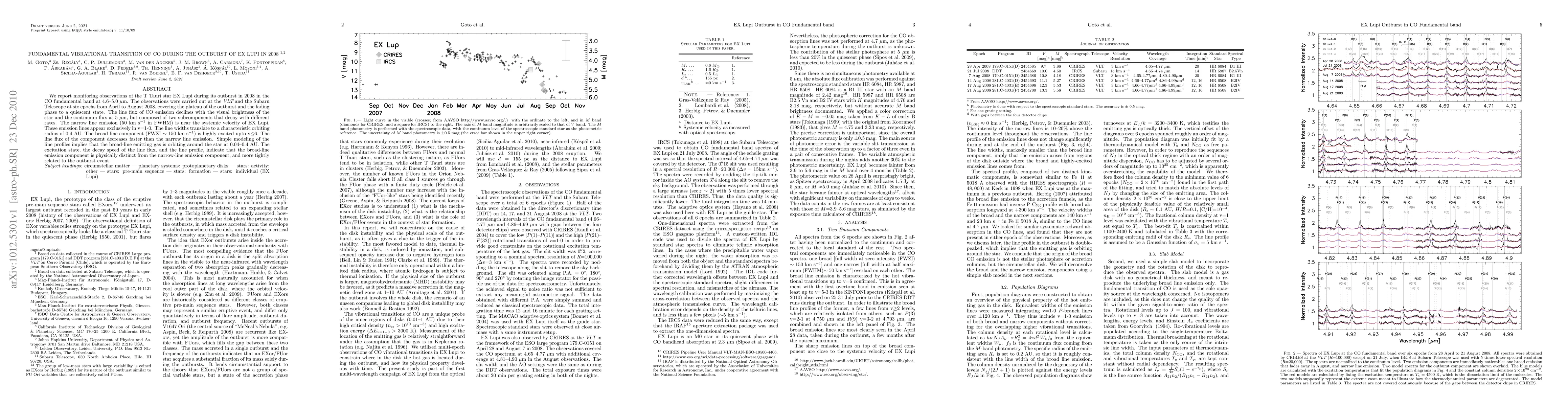 The research paper tracks CO emissions from the T Tauri star EX Lupi during its 2008 outburst, revealing two distinct emission components with different decay rates and line widths, suggesting physical differences between them.