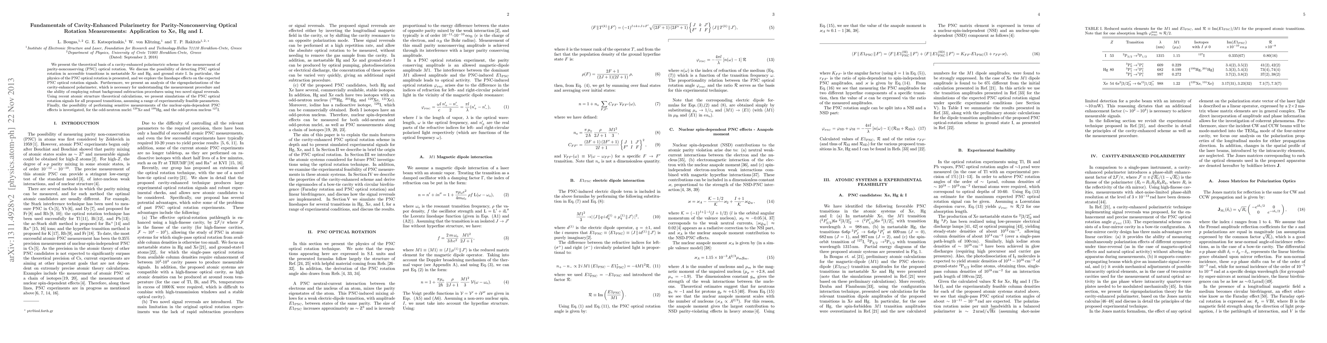 This paper outlines a cavity-enhanced polarimetric method for measuring parity-nonconserving optical rotation, focusing on transitions in metastable Xe, Hg, and ground state I. It discusses theoretical foundations, lineshape effects, and simulations based on recent atomic structure calculations, aiming to detect nuclear-spin-dependent effects in $^{129}$Xe, $^{199}$Hg, and $^{127}$I.